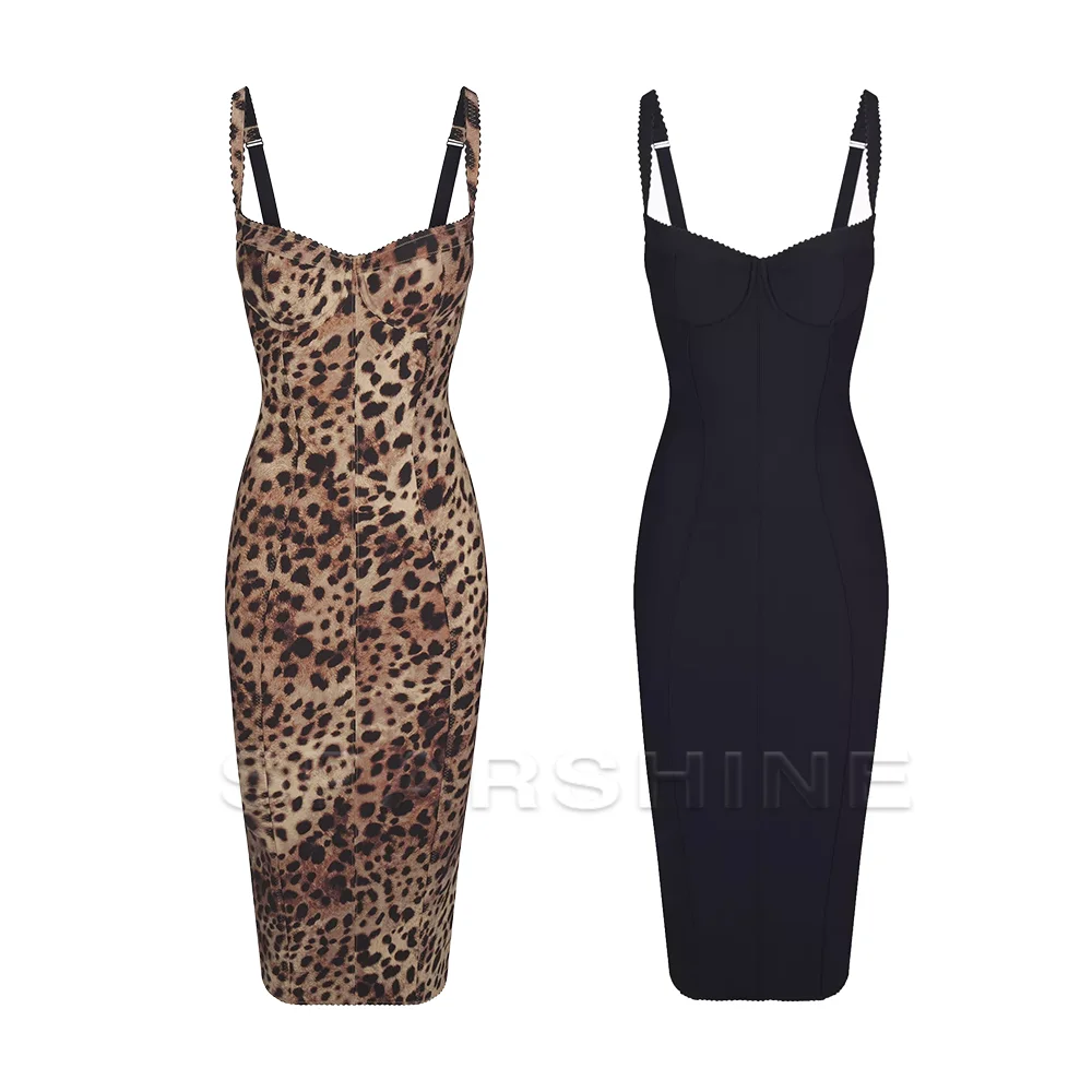 Victoria’s Vogue Sexy Leopard Print Dress Women’s Sleeveless Fitted Stretch Bodycon Mid-Calf Dress Clubwear Evening Party Dresses