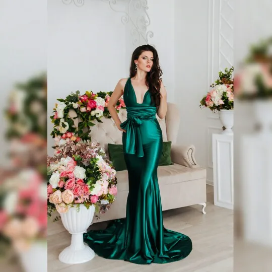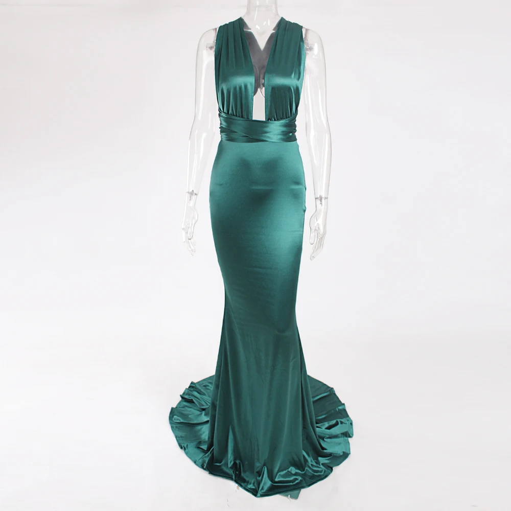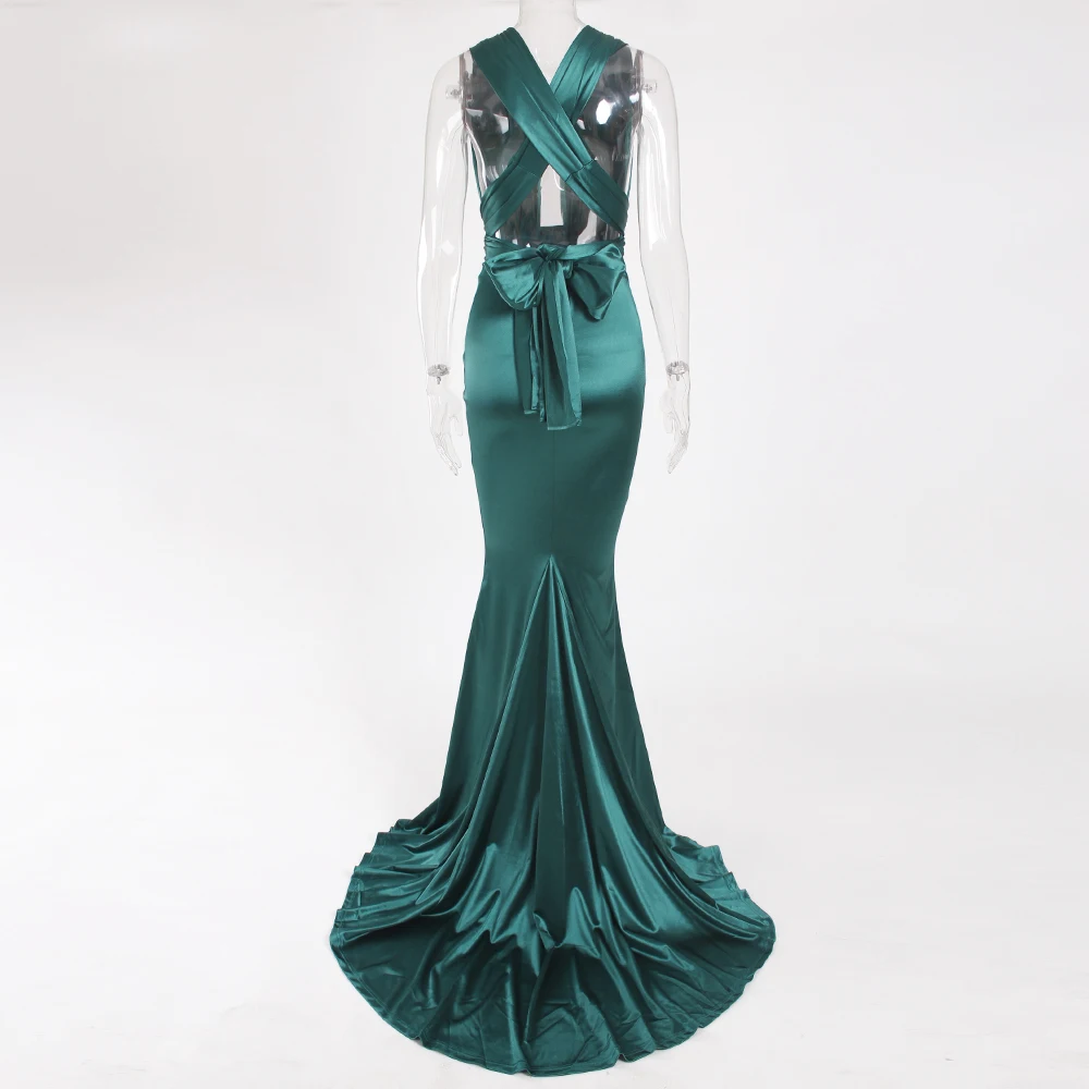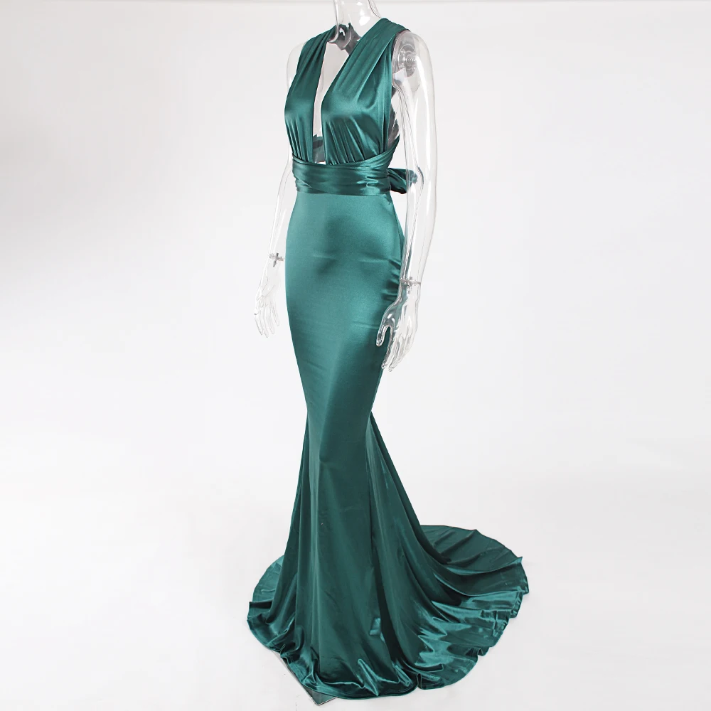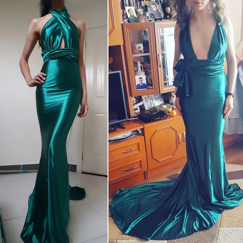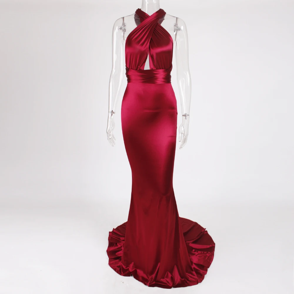 victoria’svogue 2021 Sexy Mermaid Maxi Dresses DIY Straps Open Back Shiny Green Burgundy Satin Bodycon Backless Party Dress