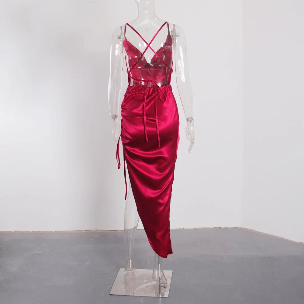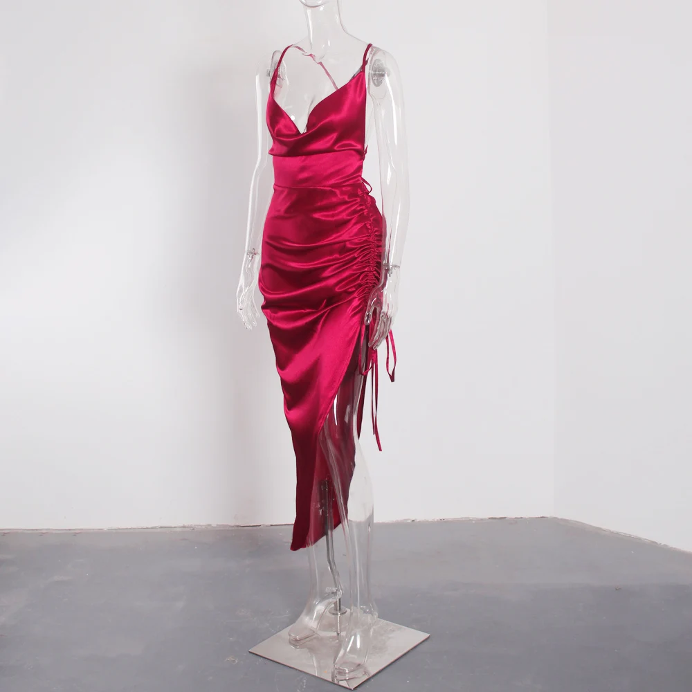 victoria’svogue 2021 Sexy Night Club Party Drss Low Cut Backless Split Side Drawstring Sleeveless Summer Long Dresses