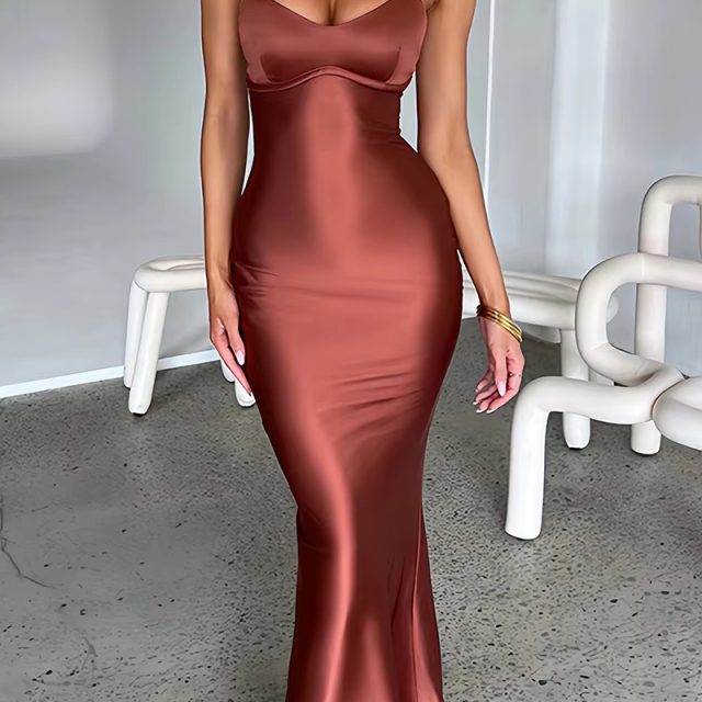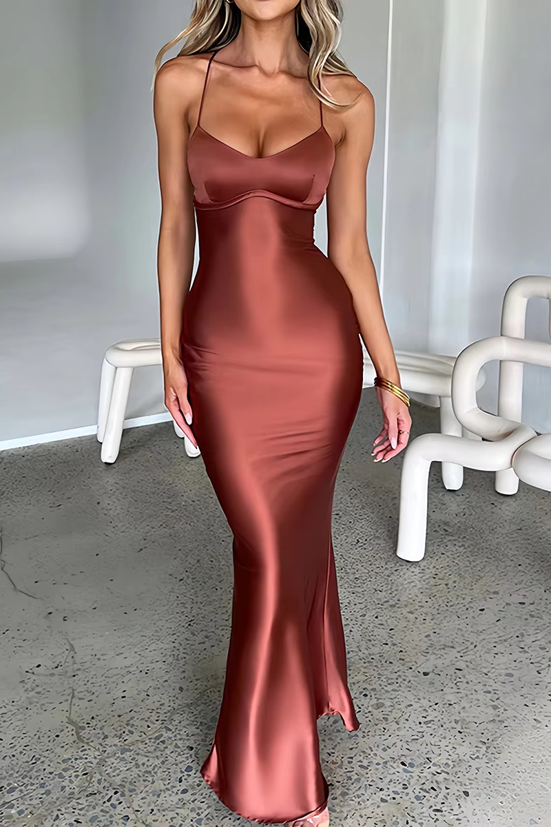 Victoria’s Vogue Sexy Satin Backless Lace Up Mermaid Slip Dress Women Sweetheart Neck Sexy Slim Bodycon Dresses Elegant Silk Gown Partywear