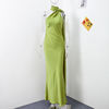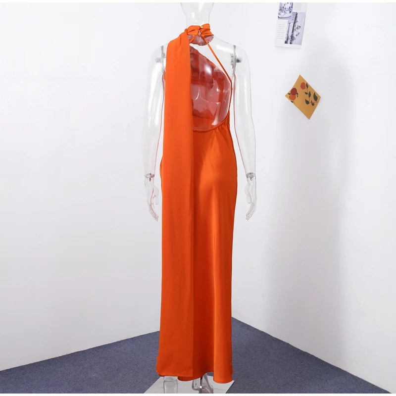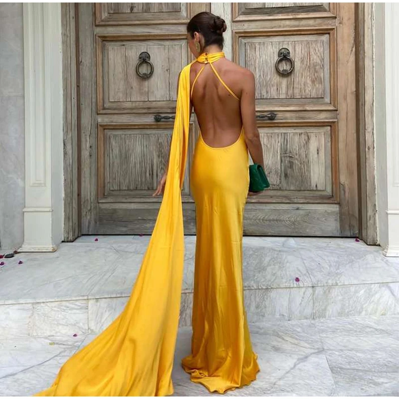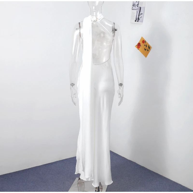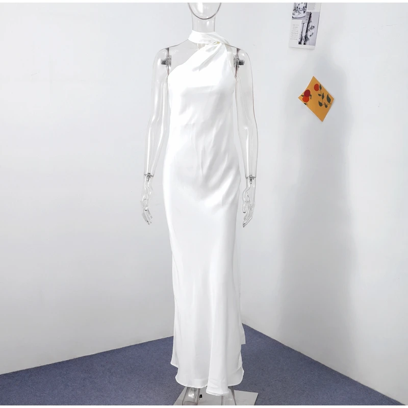 Victoria’s Vogue Sexy Satin Ribbon Party Dress Women Elegant Halter Backless Off Shoulder Sleeveless Female Dresses 2024 Summer Solid Robe Gown