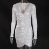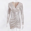 victoria’svogue 2021 Sexy Sequined Sexy V Neck Empire Bodycon Mini Dress Full Sleeved Pleated Short Stretchy Lining Party Dress Night Club Dress