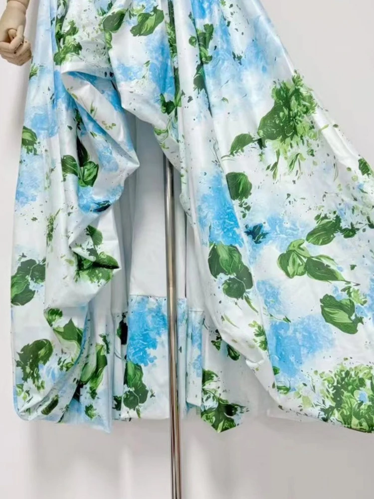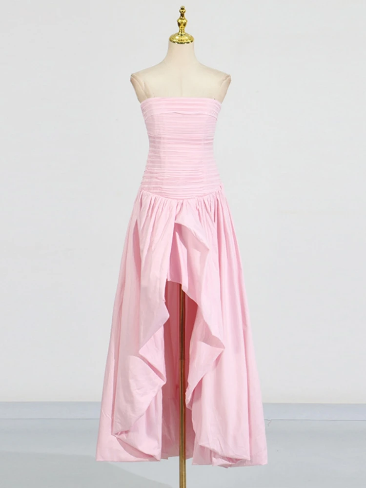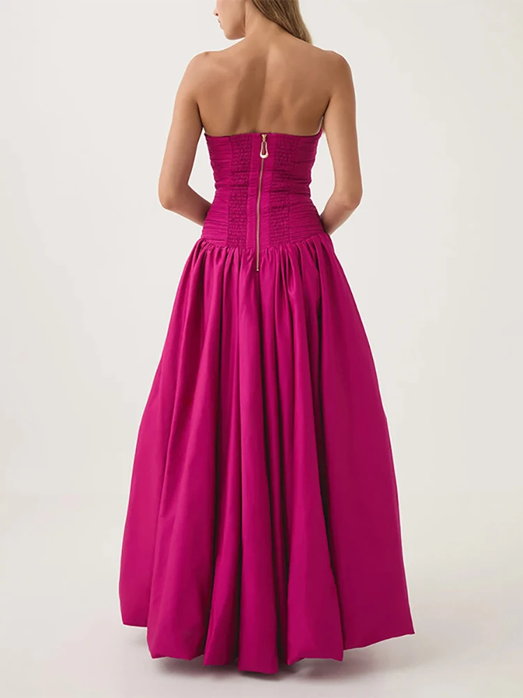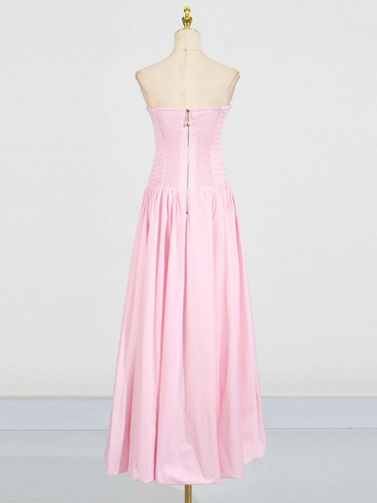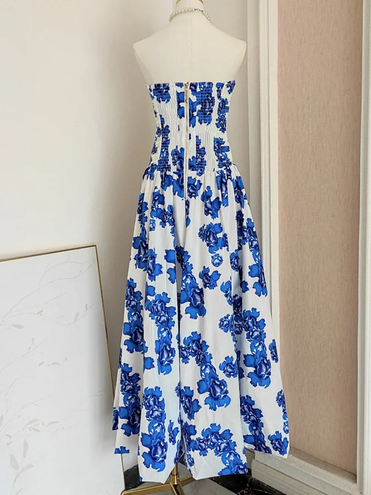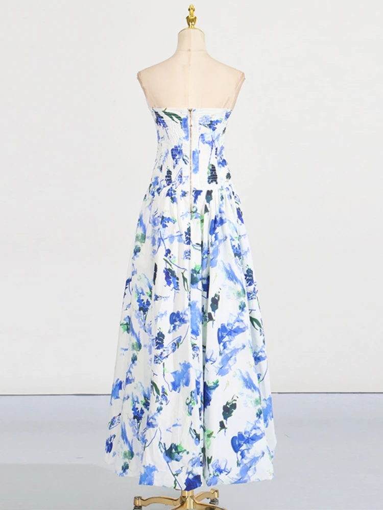 Victoria’s Vogue Strapless Printed Split Deign Long Bubble Dress Women Sleeveless Backless High Waist Patchwork Folds Dresses Evening Party