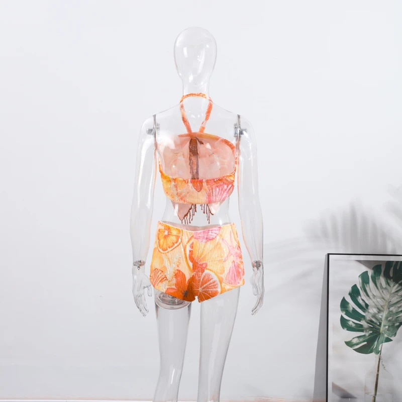 Victoria’s Vogue Sexy Tassel Tank Skirt Women Set Fashion Halter Sleeveless Crop Top Mini Slim Hip Package Skirts 2025 Summer Beach Lady Suit