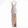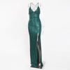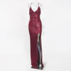 victoria’svogue 2021 Sexy Woman Sequin Dress Silver Maxi Dress Bodycon Strappy V Neck Lace Up Backless Stretchy Party Dress Green Burgundy