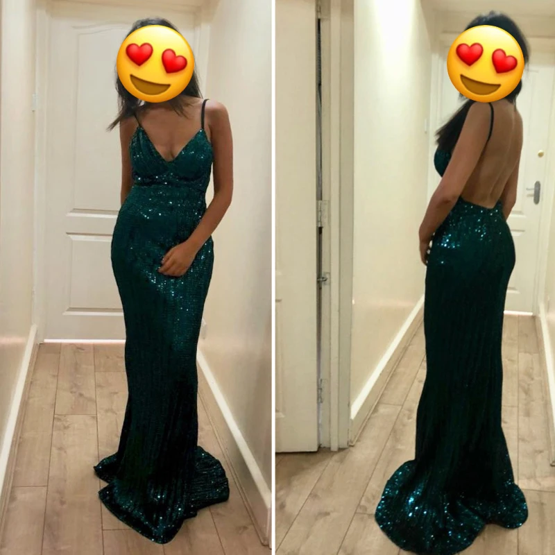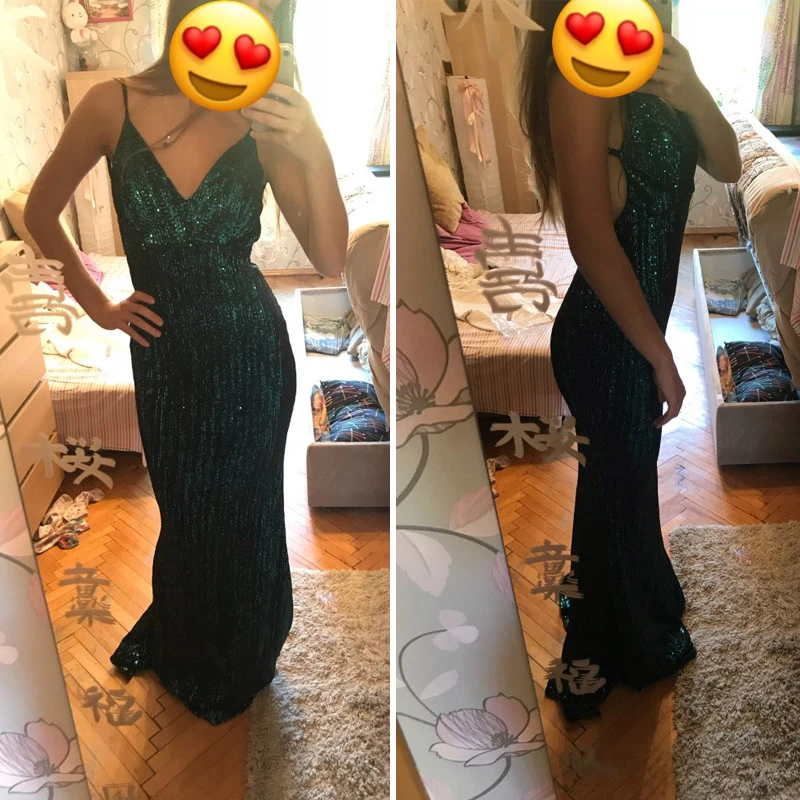 victoria’svogue 2021 Shiny Green Sequined V Neck Maxi Dress Backless Maxi Dress Stretchy Backless Floor Length Padded Evening Party Dress