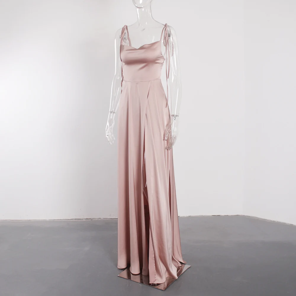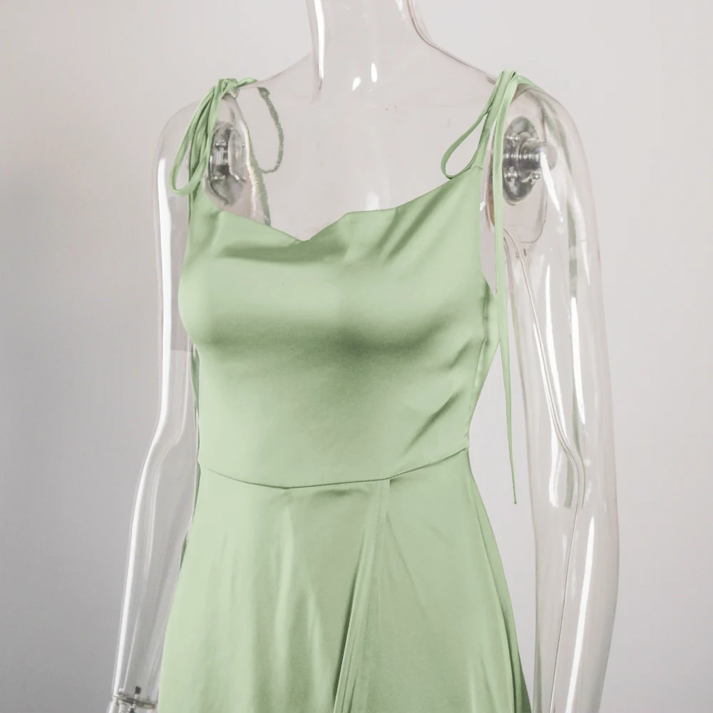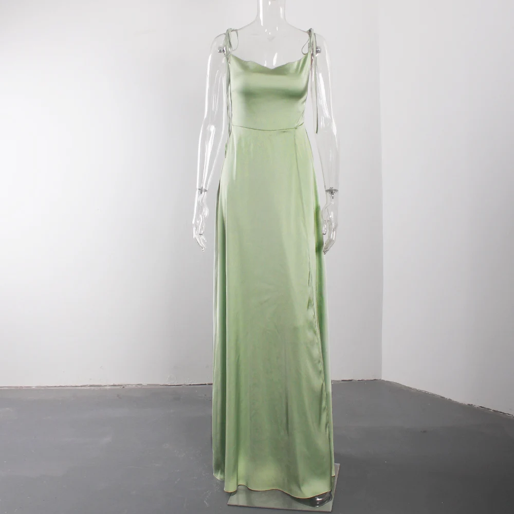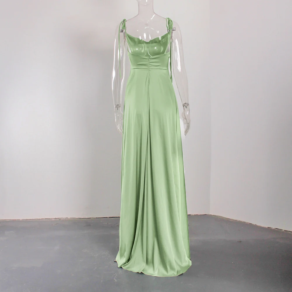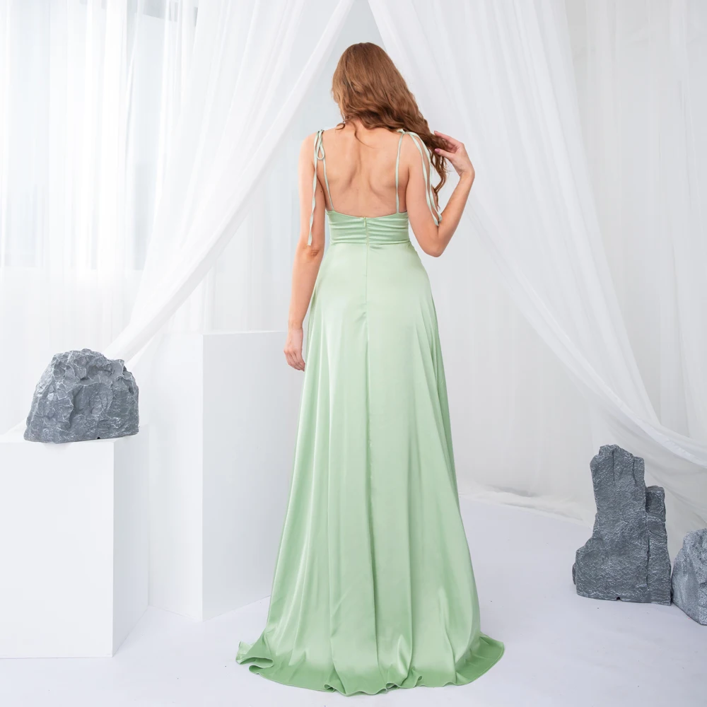Shiny Satin Long Floor Length Party Dress Tie Up Straps Split Sleeveless Evening Prom Dress Mint Green Red