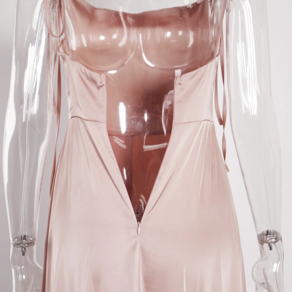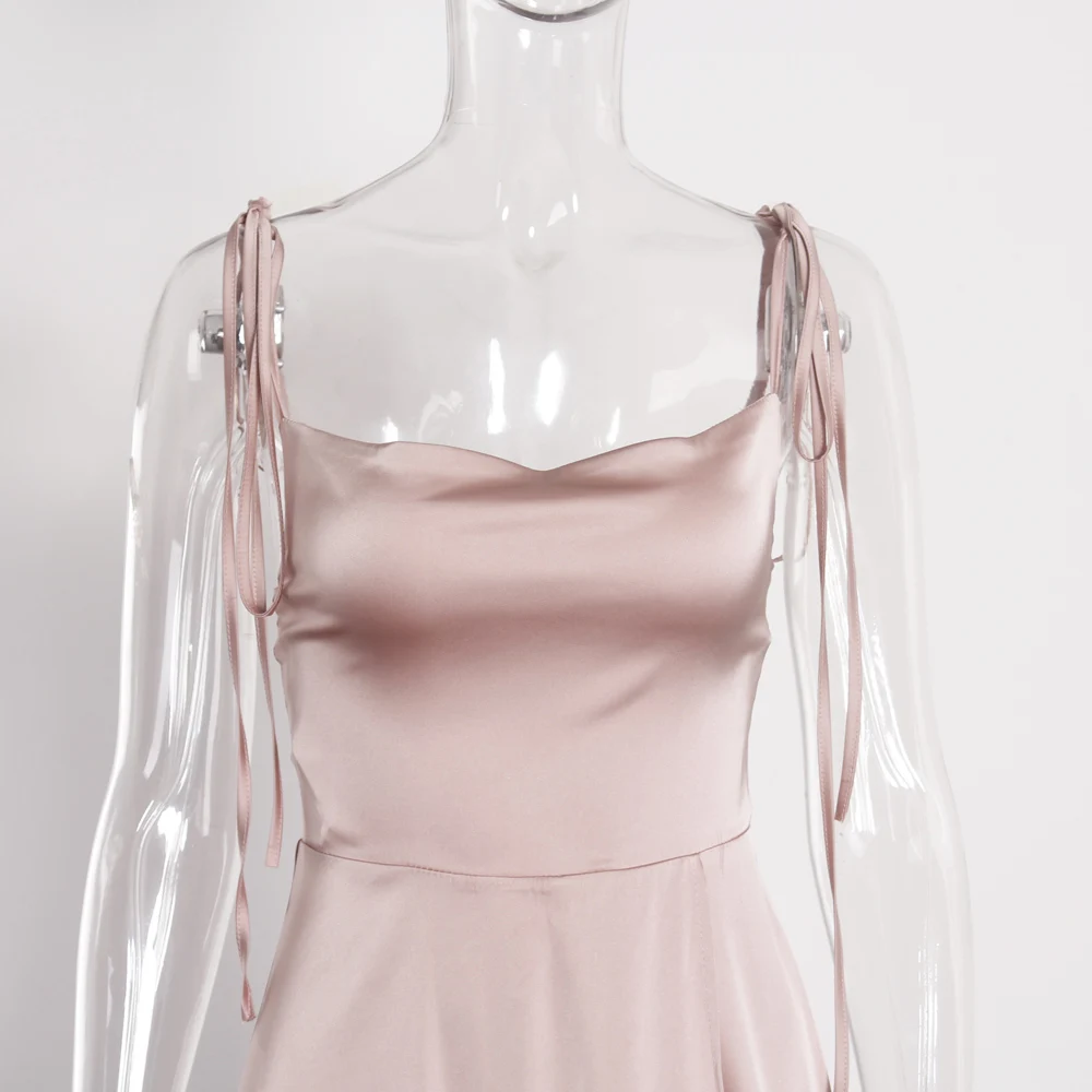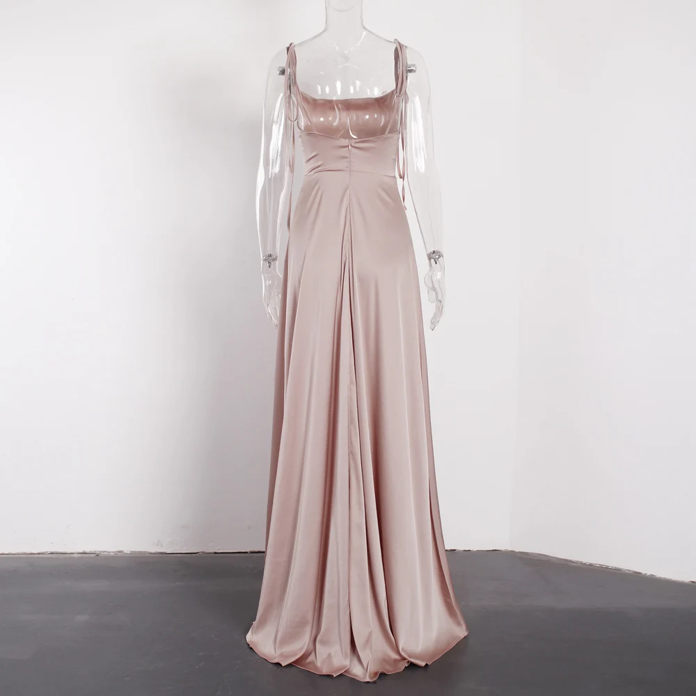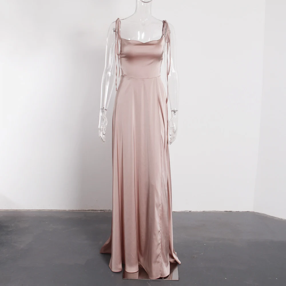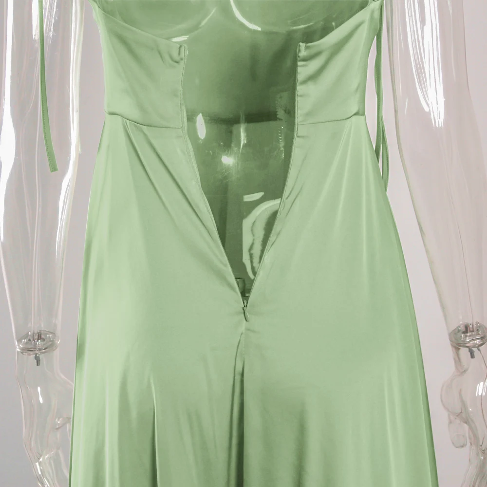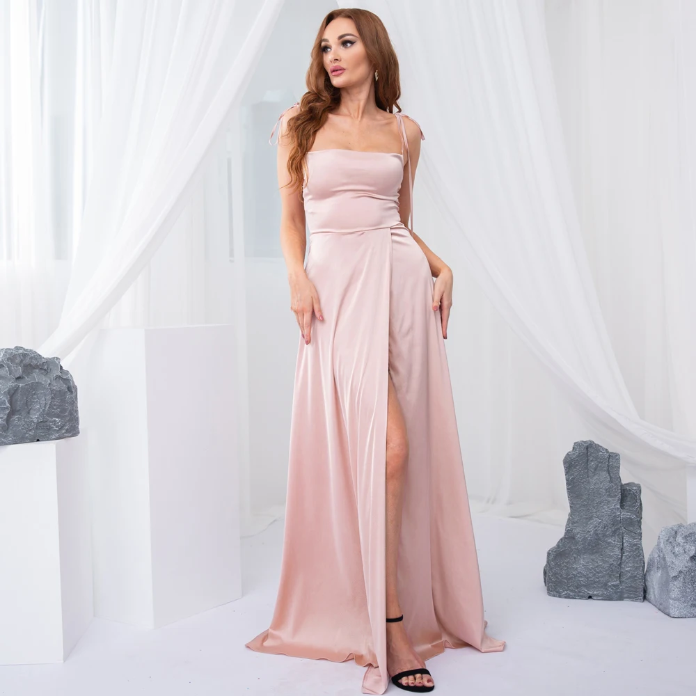Shiny Satin Long Floor Length Party Dress Tie Up Straps Split Sleeveless Evening Prom Dress Mint Green Red