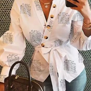 victoria’s vogue Button Blouse Shirt 2019 Female Clothing Long Sleeve Blusas Casual Women’s Office Blouses Print Letter Lady OL Topia’s vogue