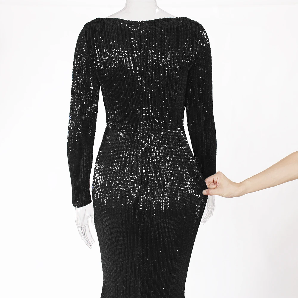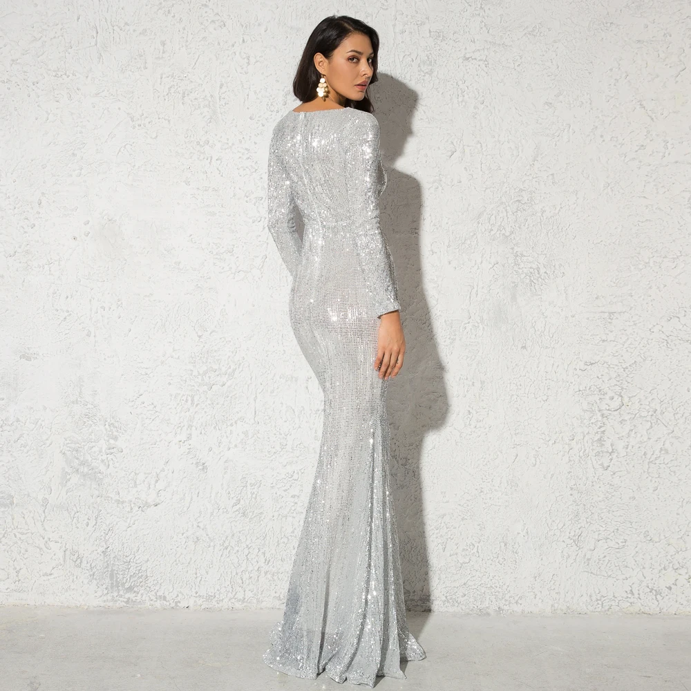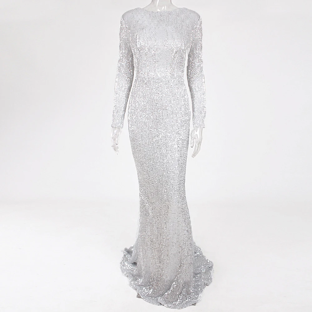 victoria’svogue 2021 Square Collar White Sequined Long Modest Evening Party Gown Maxi Dress Elegant Floor Length Full Sleeved vSilver Sequined O Neck Long Sleeve Evening Party Dress Stretchy Elegant Sequin Floor Length Maxi Dress Gown Black Red Burgundy