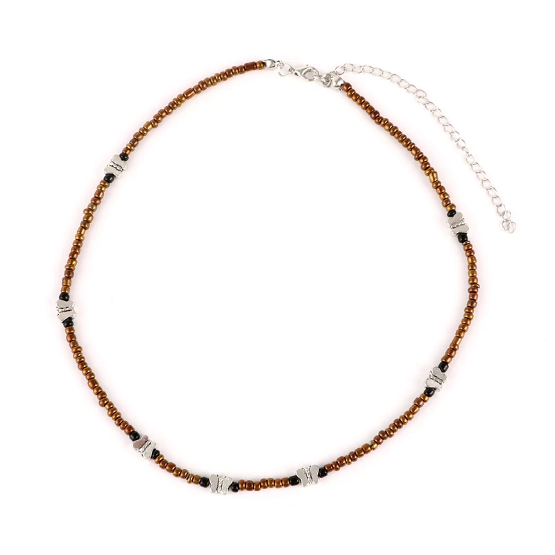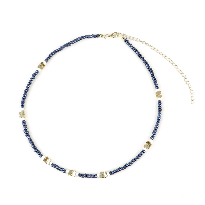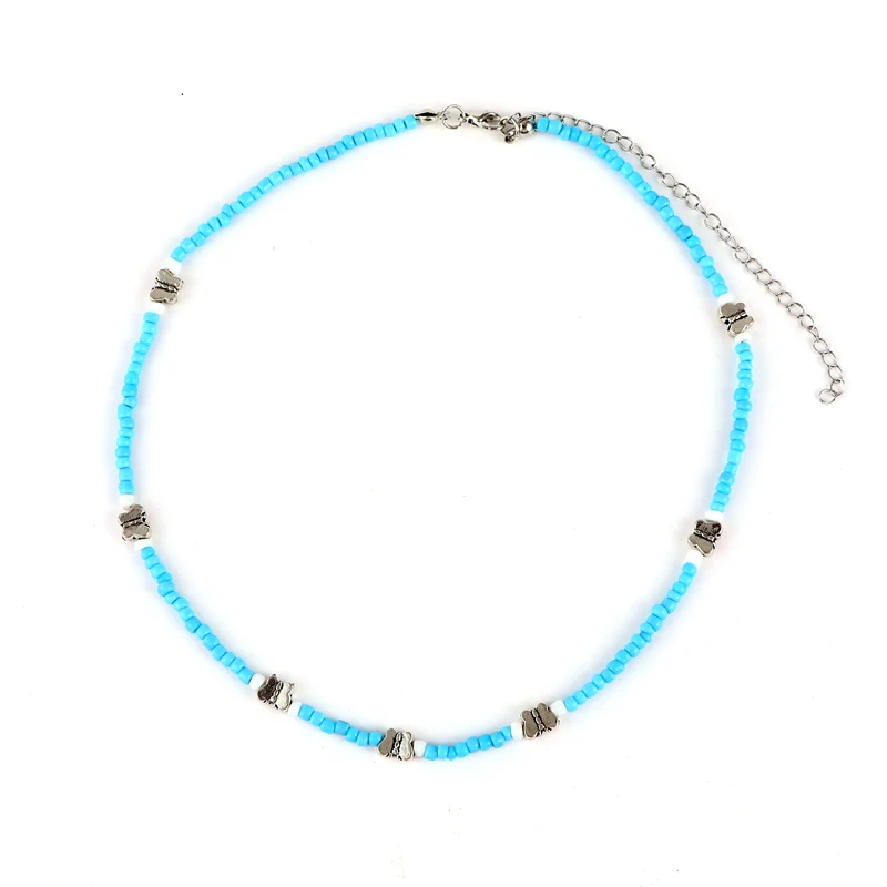 victoria’svogue 2021 Simple Seed Beads Strand Butterfly Necklace Women String Beaded Short Choker Bohemia Handmade Beach Jewelry Birthday Party Gift