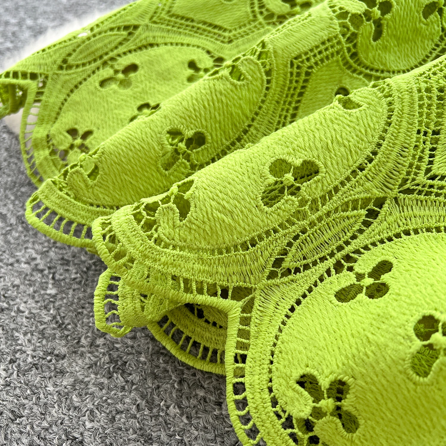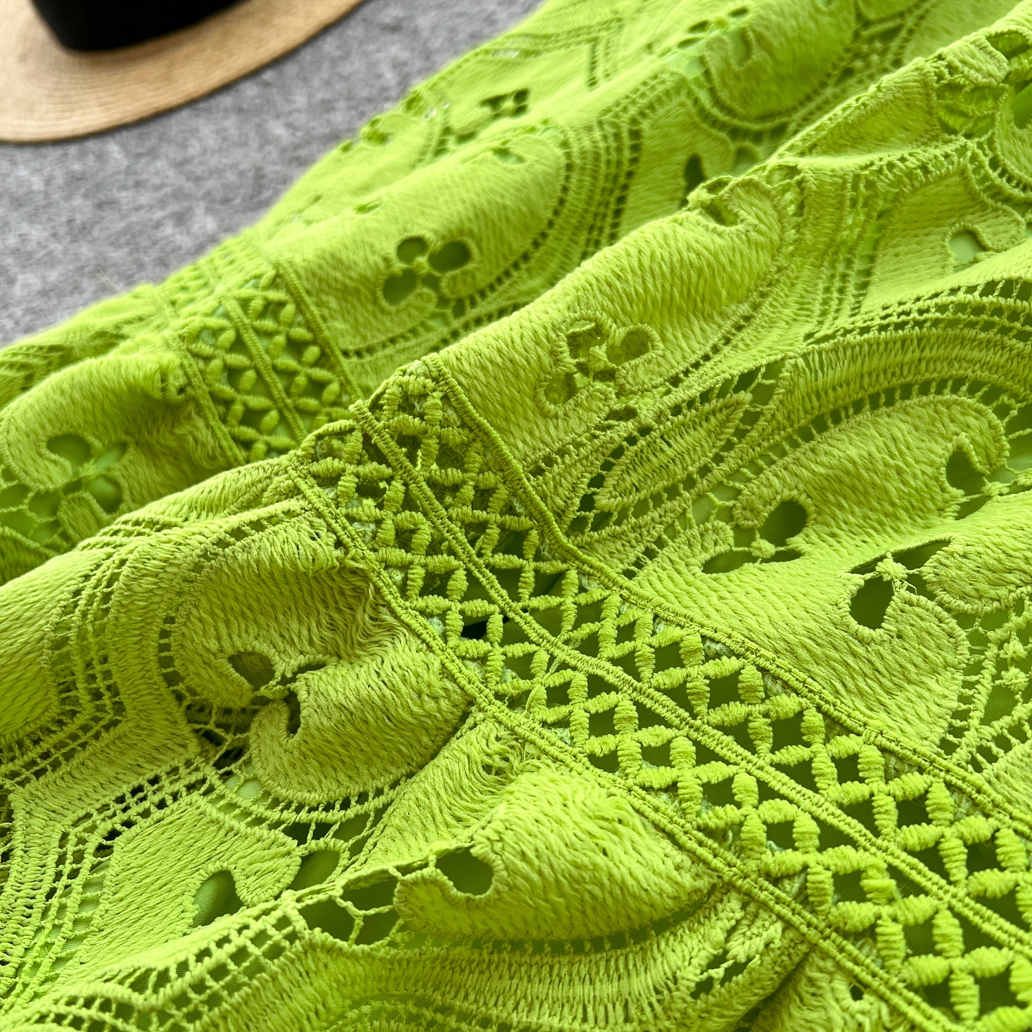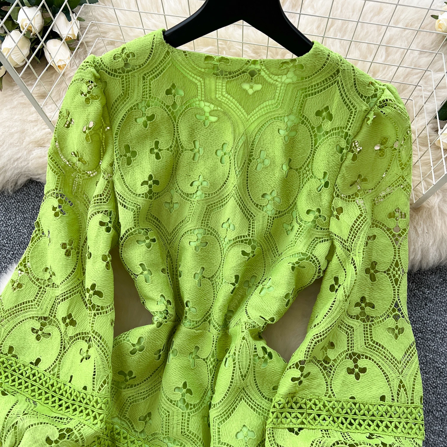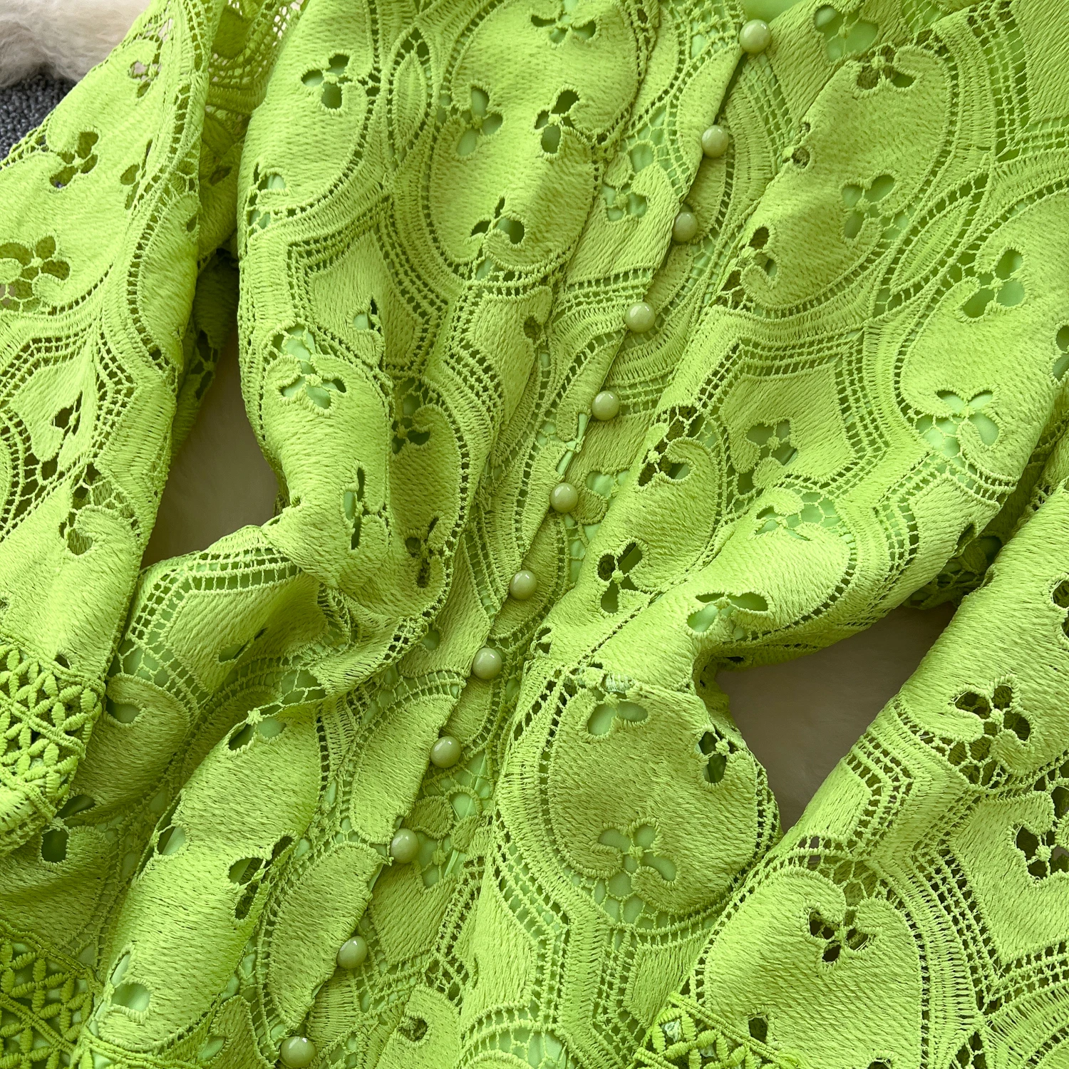 Victoria’s Vogue French Vacation Fashion Dress Women Buttons Hook Flower Hollow Out Design 2025 High Quality Lace Ruffles Long Dress