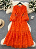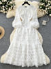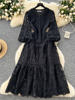 Victoria’s Vogue French Vacation Fashion Dress Women Buttons Hook Flower Hollow Out Design 2025 High Quality Lace Ruffles Long Dress