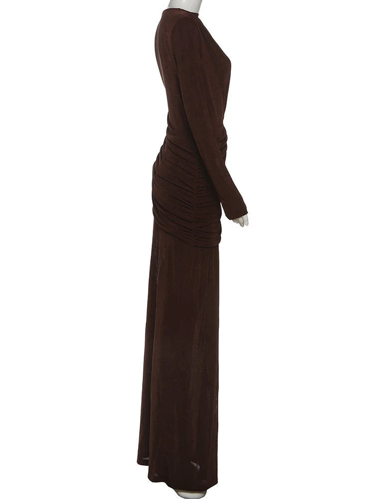 Victoria’s Vogue Puss Elegant Thin Irregular Pleats Dress Women Patchwork Full Sleeve Classic Simple Skinny Evening Prom Bodycon