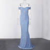 victoria’svogue 2021 Slash Neck Stretch Sparkle Sequin Long Party Dress Off the Shoulder Sleeveless Floor Length Evening Gown Red Sky Blue