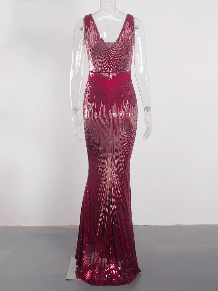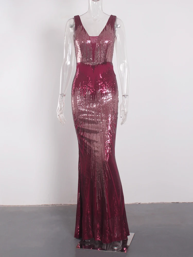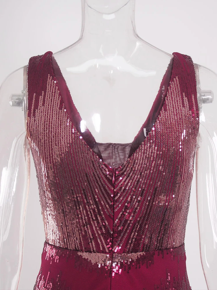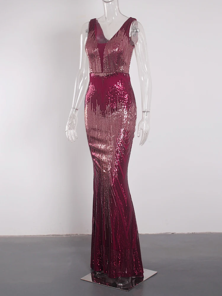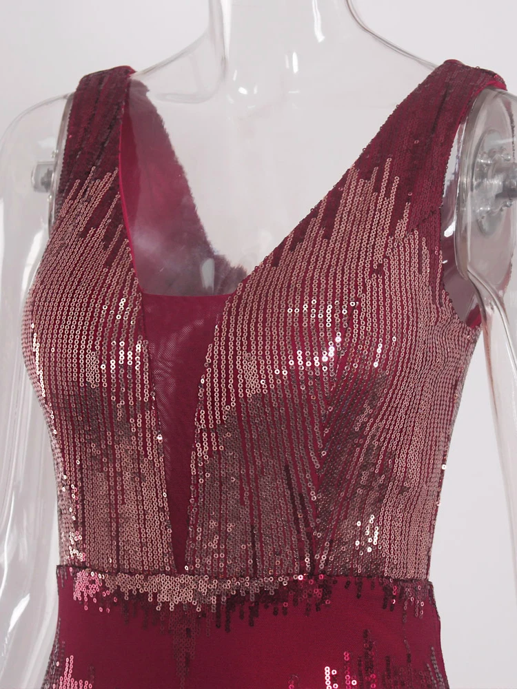 victoeria’svogue 2021 Sleeveless Maxi Dress V Neck Shiny Sequin Evening Night Party Dress Stretch