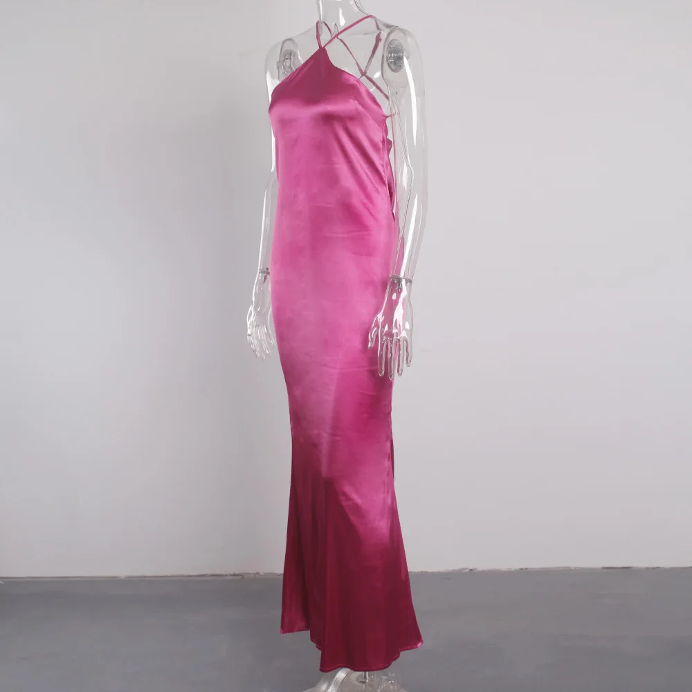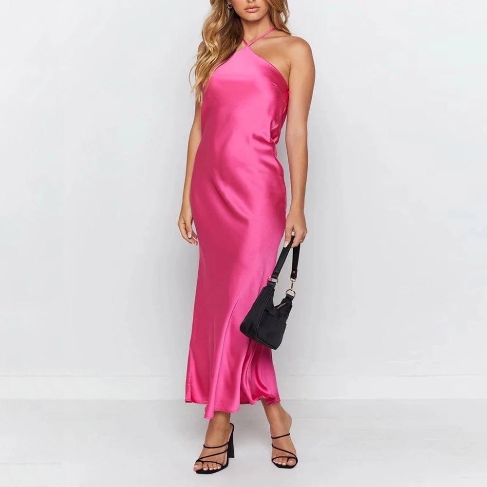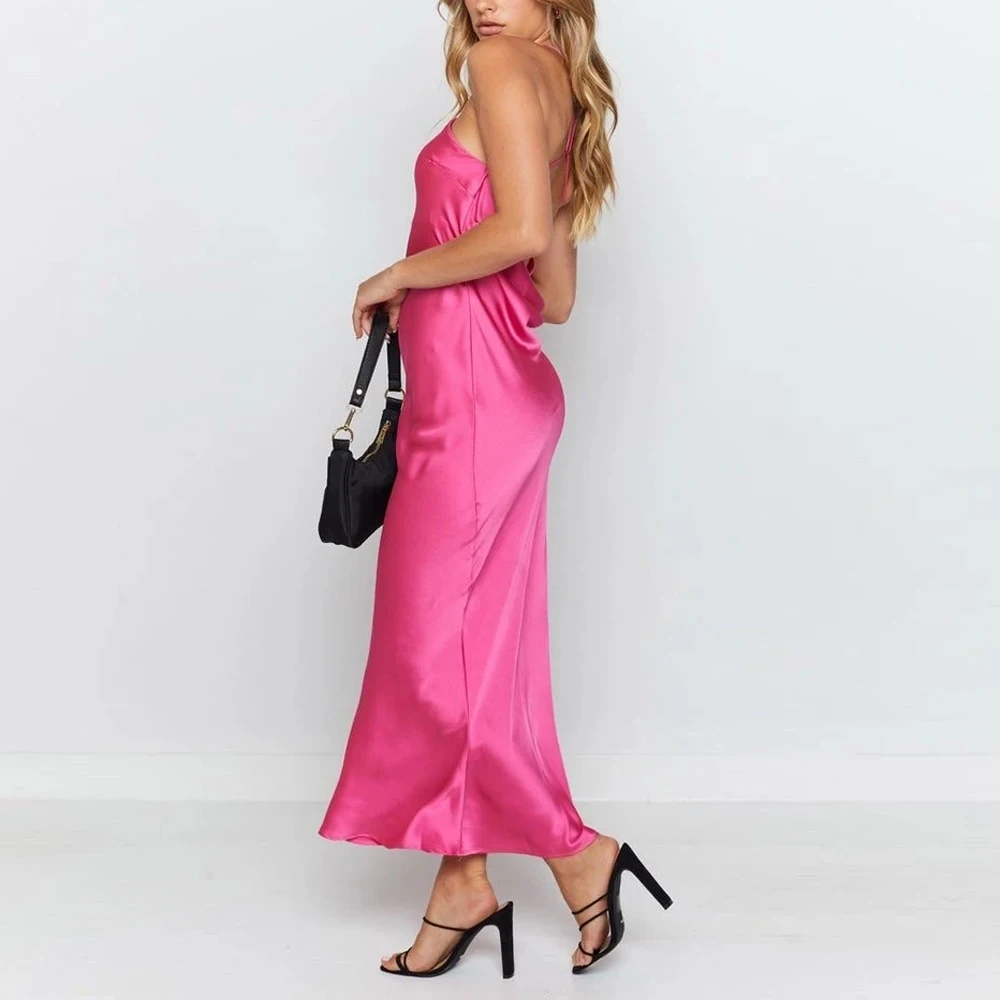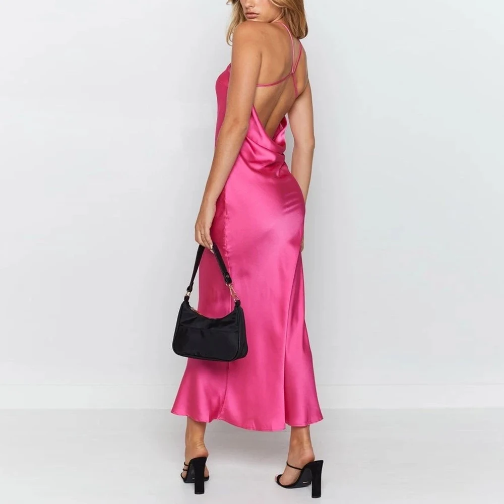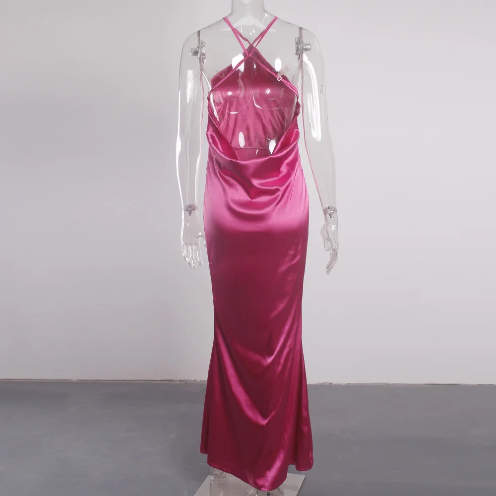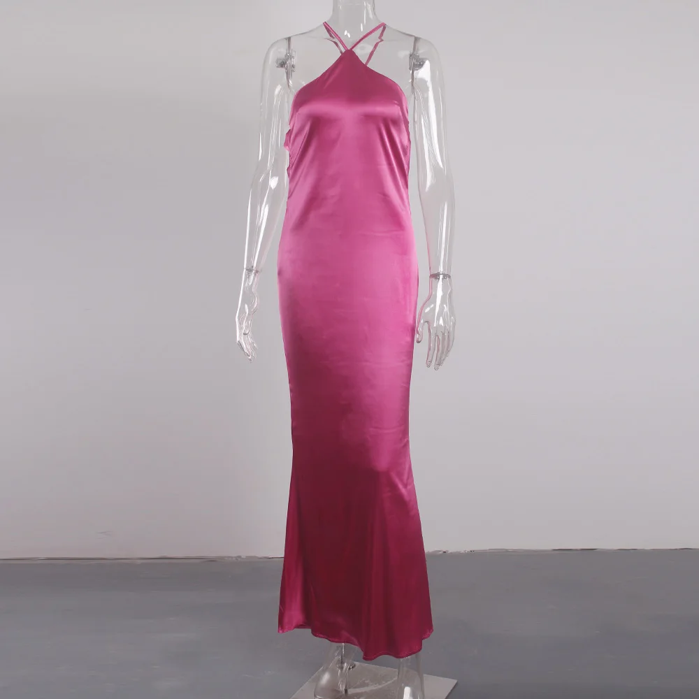 victori9a’svogue 2021 Sleeveless Satin Long Summer Dress Backless Sexy Night Club Party Dress for Women