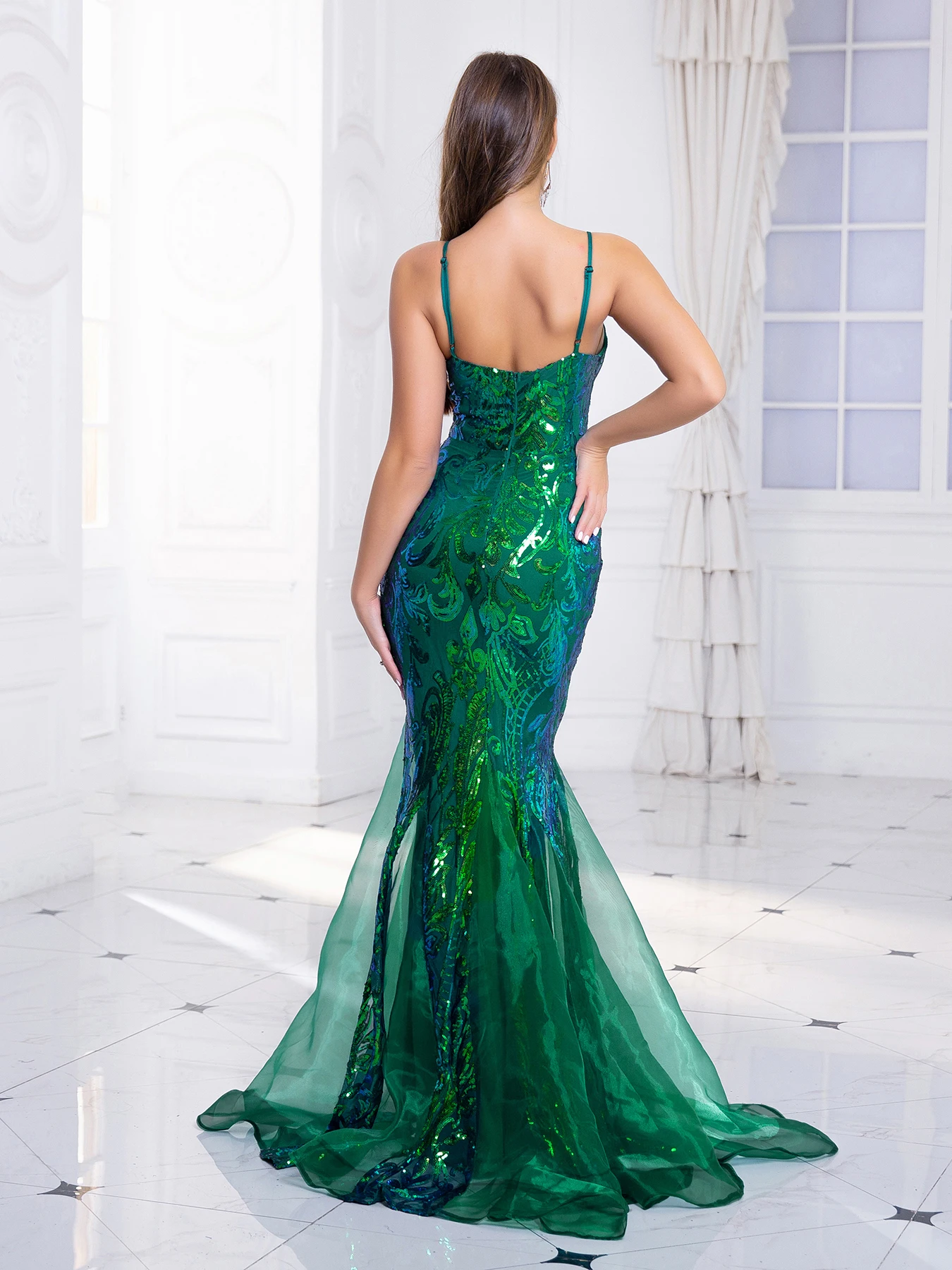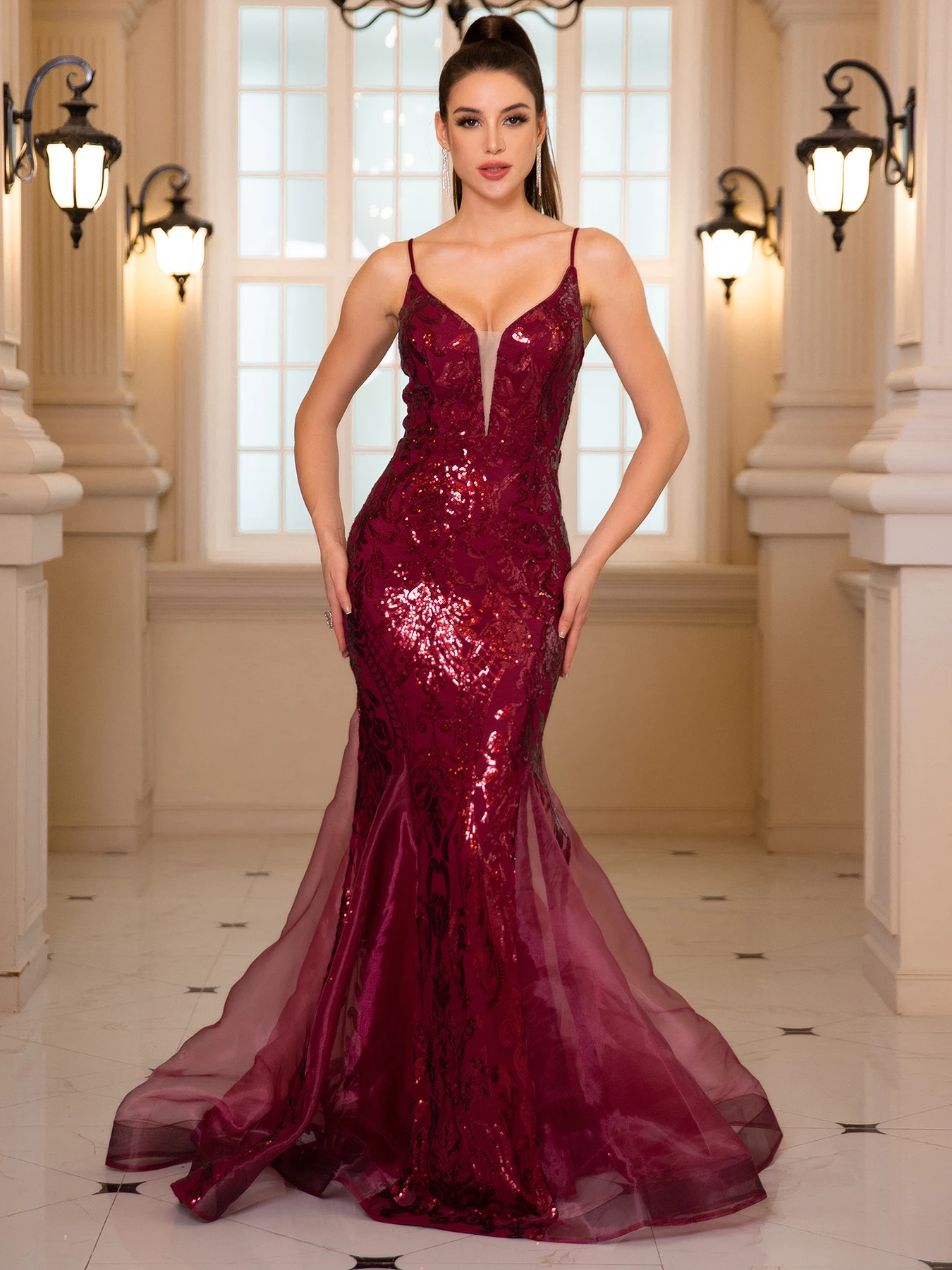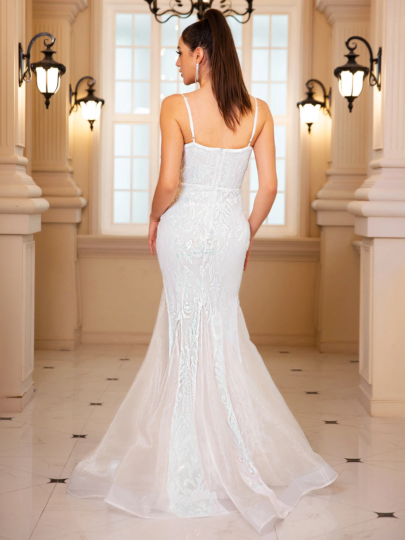 victoria’svogue V Neck Sequined Organza Mermaid White Wedding Party Dress Backless Floor Length Evening Prom Gown