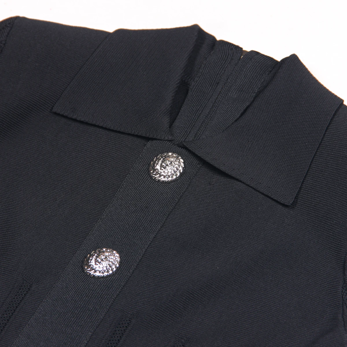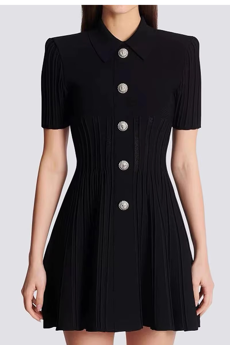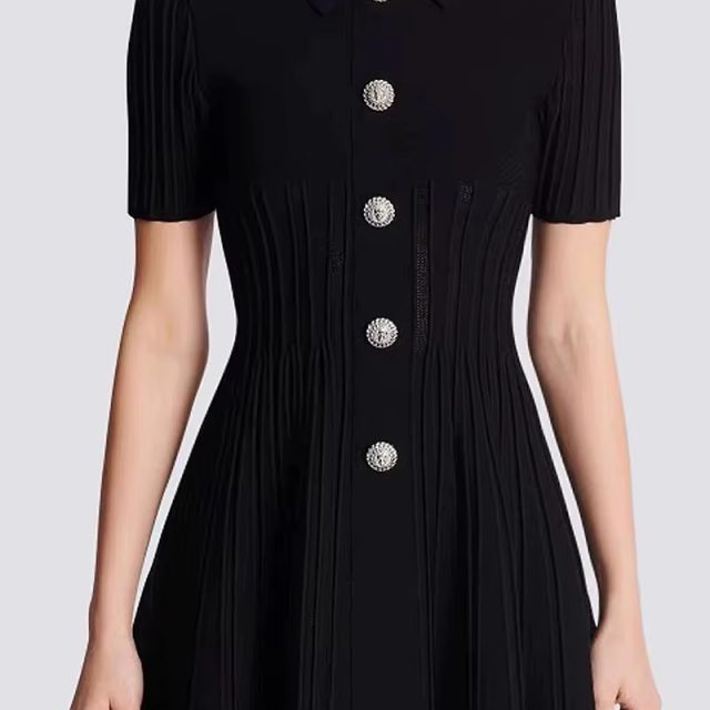 Victoria’s Vouge High Quality Fashionable Elastic Knitted Solid Color Flip Collar Button Back Zipper Large hem Pleated Casual Women’s Dress