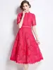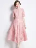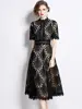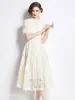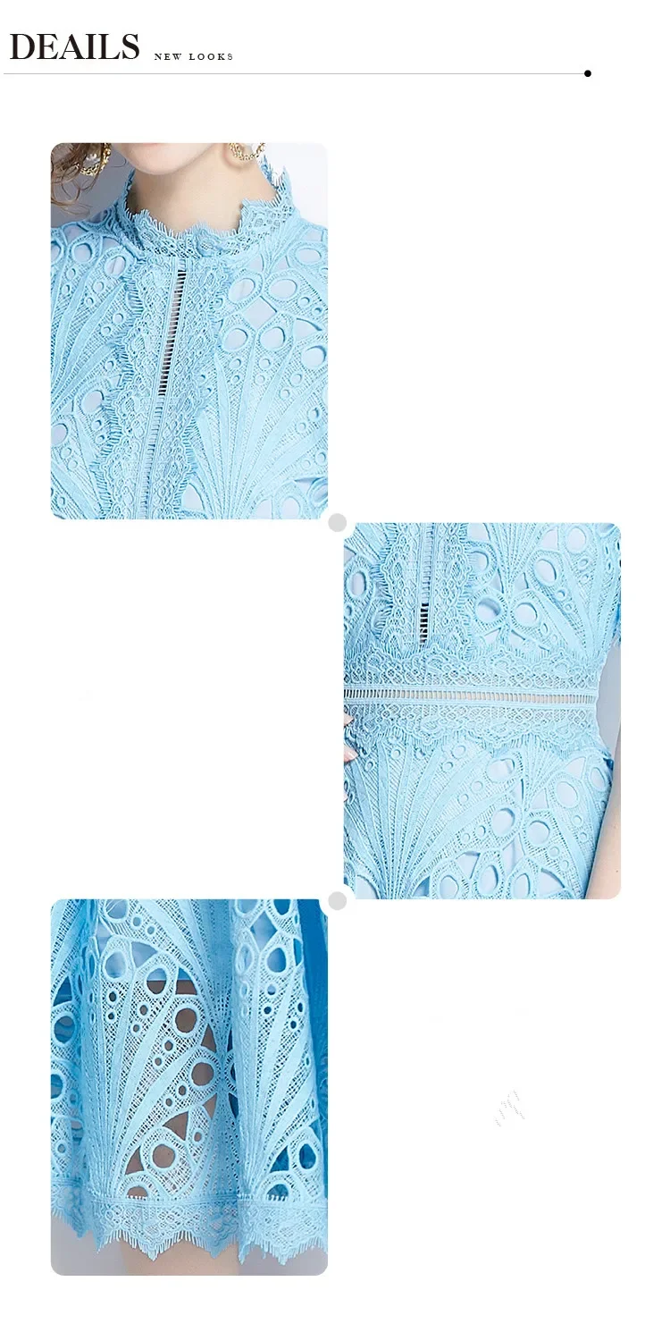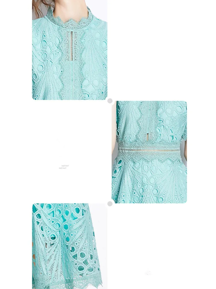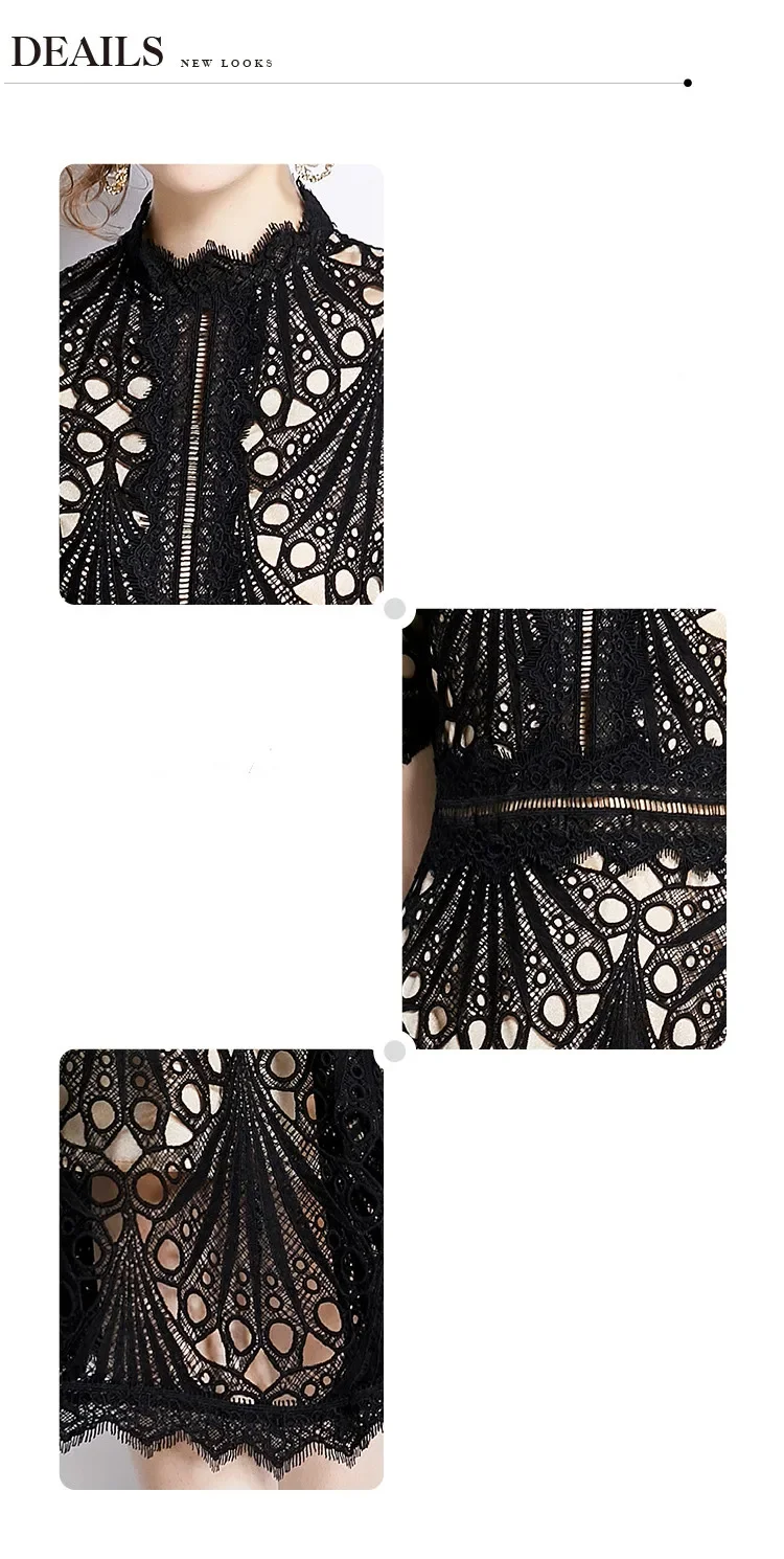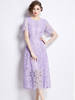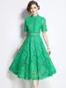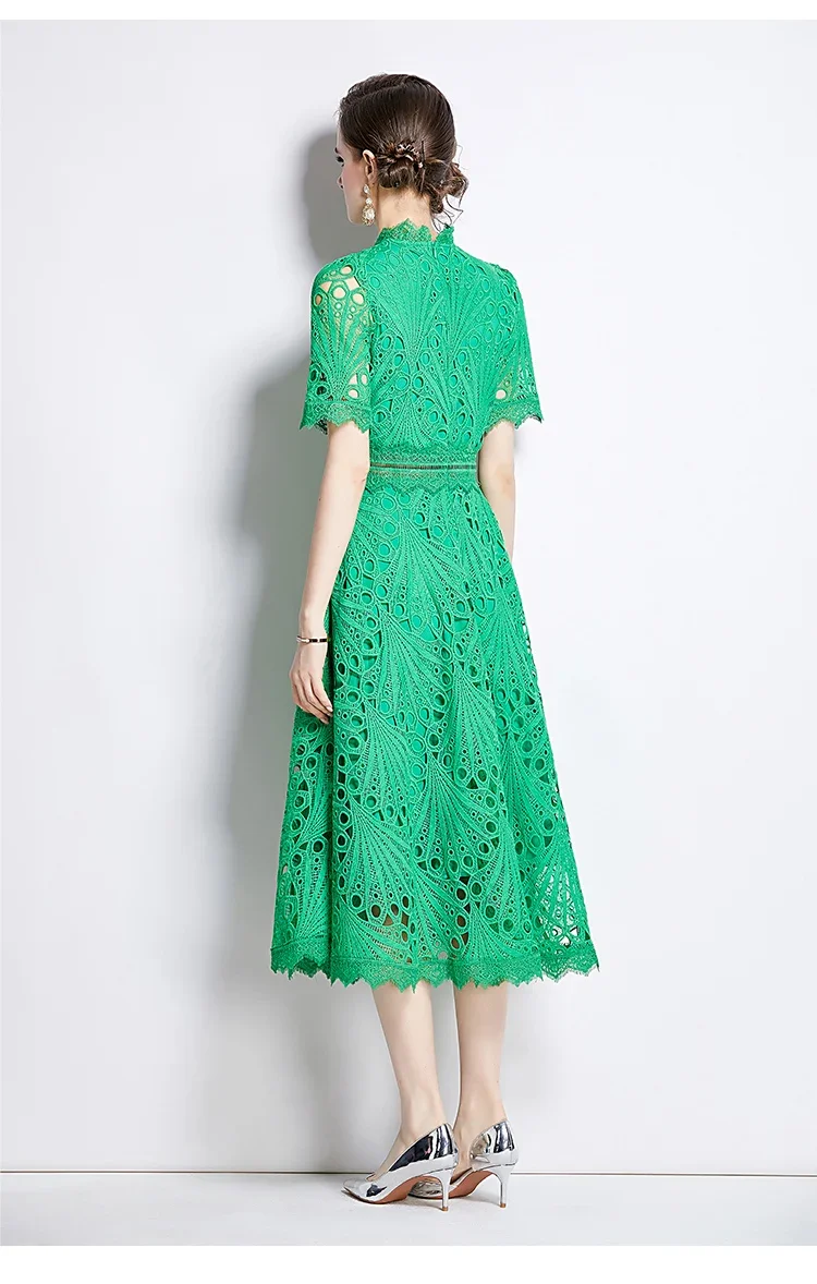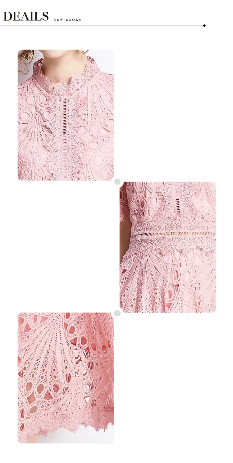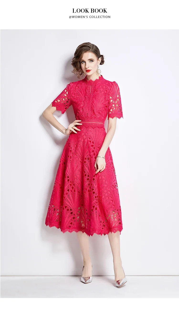 Victoria’s Vogue Vintage High-End O-Neck Short Sleeve Lace Hollow Out Dress For Women’s Summer Slim Elegant Long Dress Female Clothing