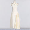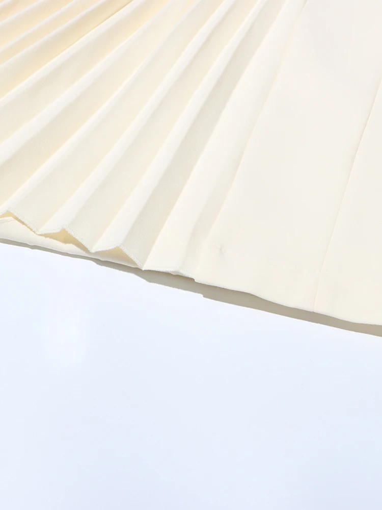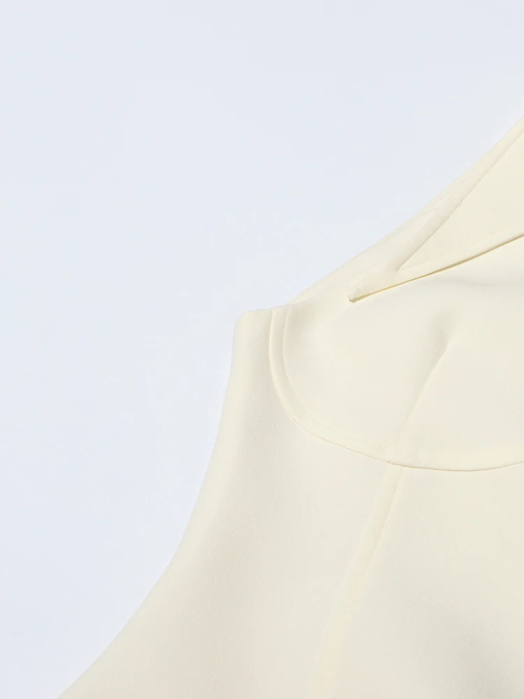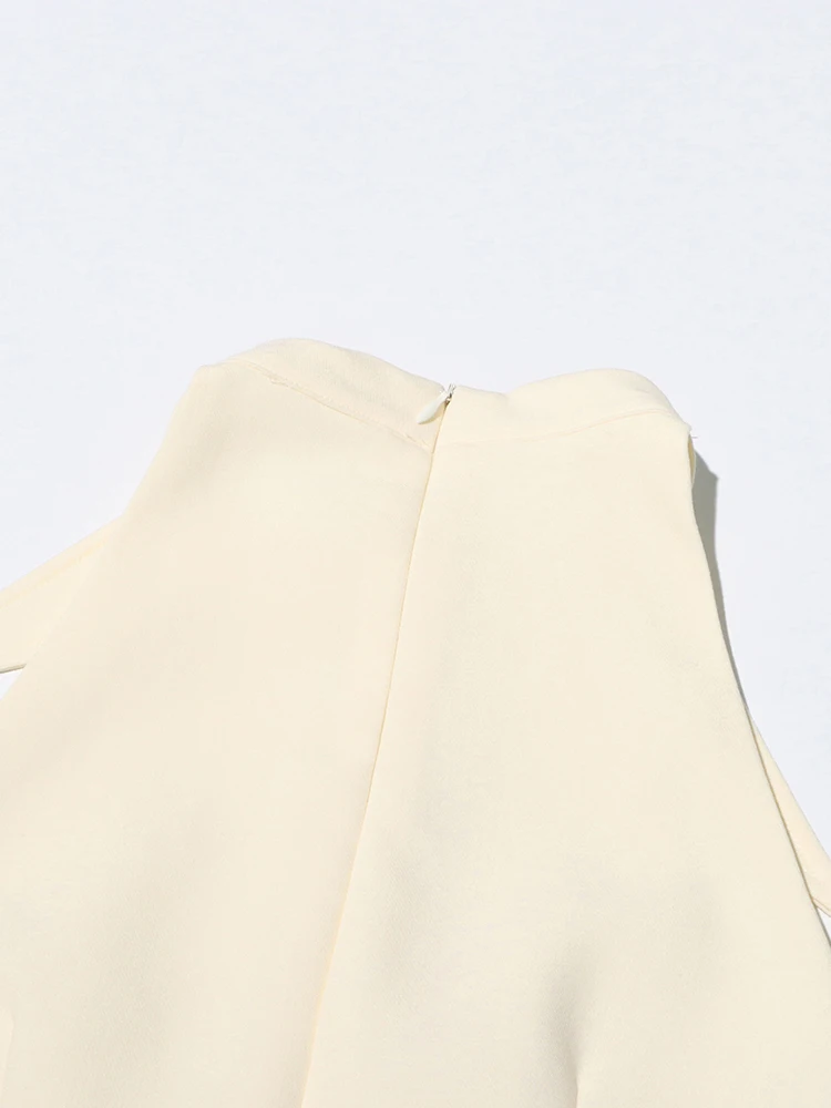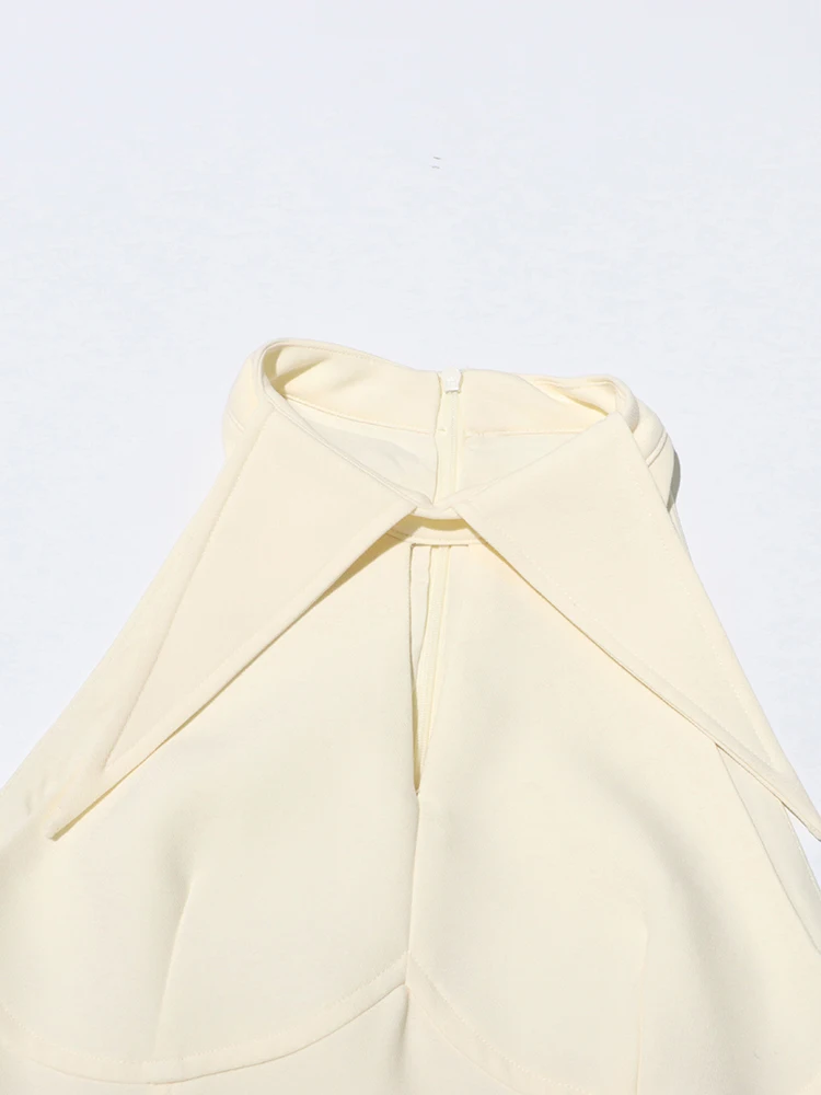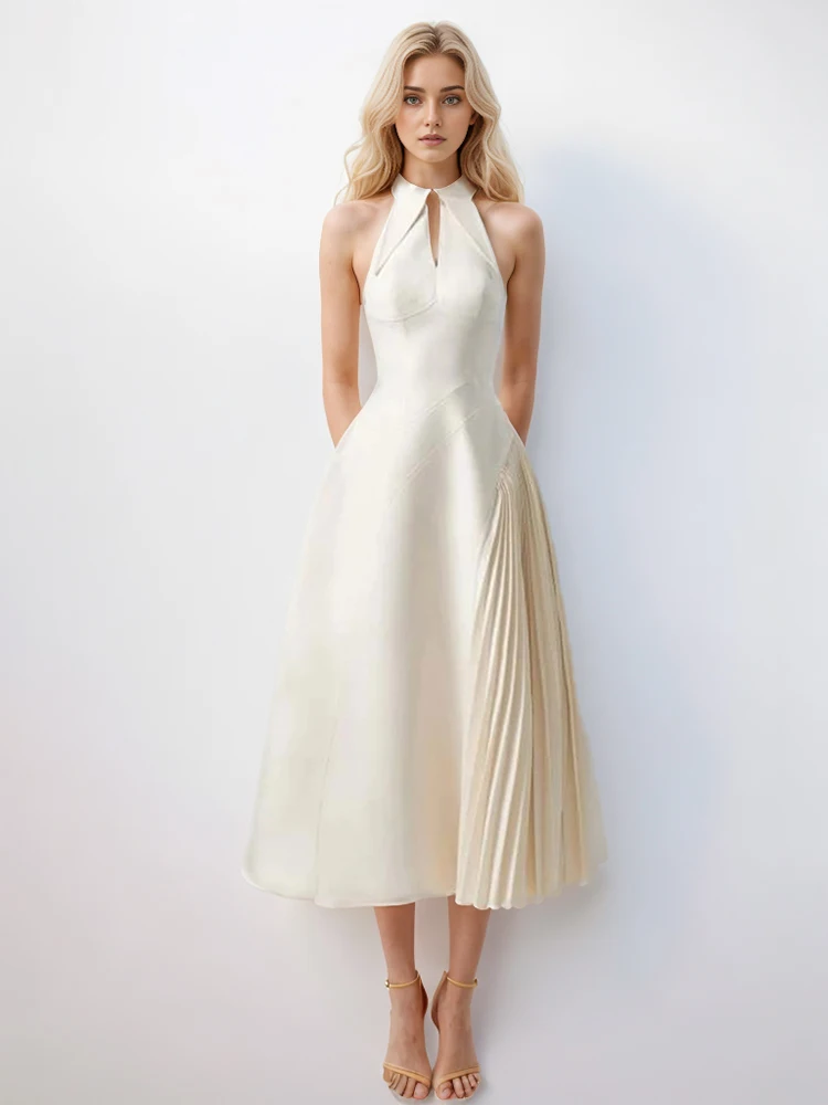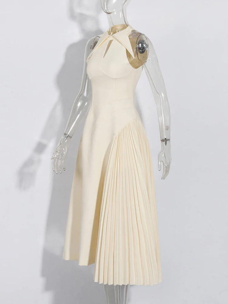 Victoria’s Vogue Solid Hollow Out Patchwork Folds Elegant Dress For Women Lapel Sleeveless High Waist Temperament Slimming Dresses Female New