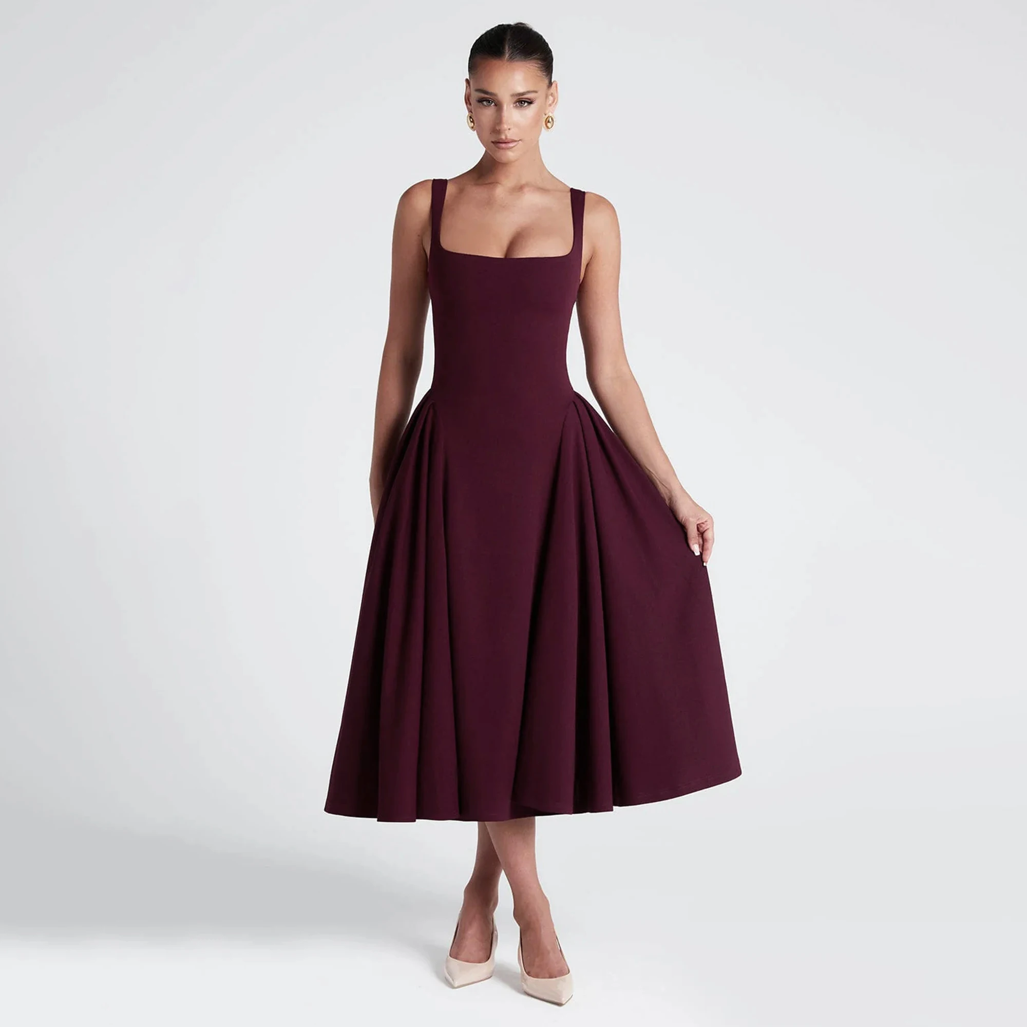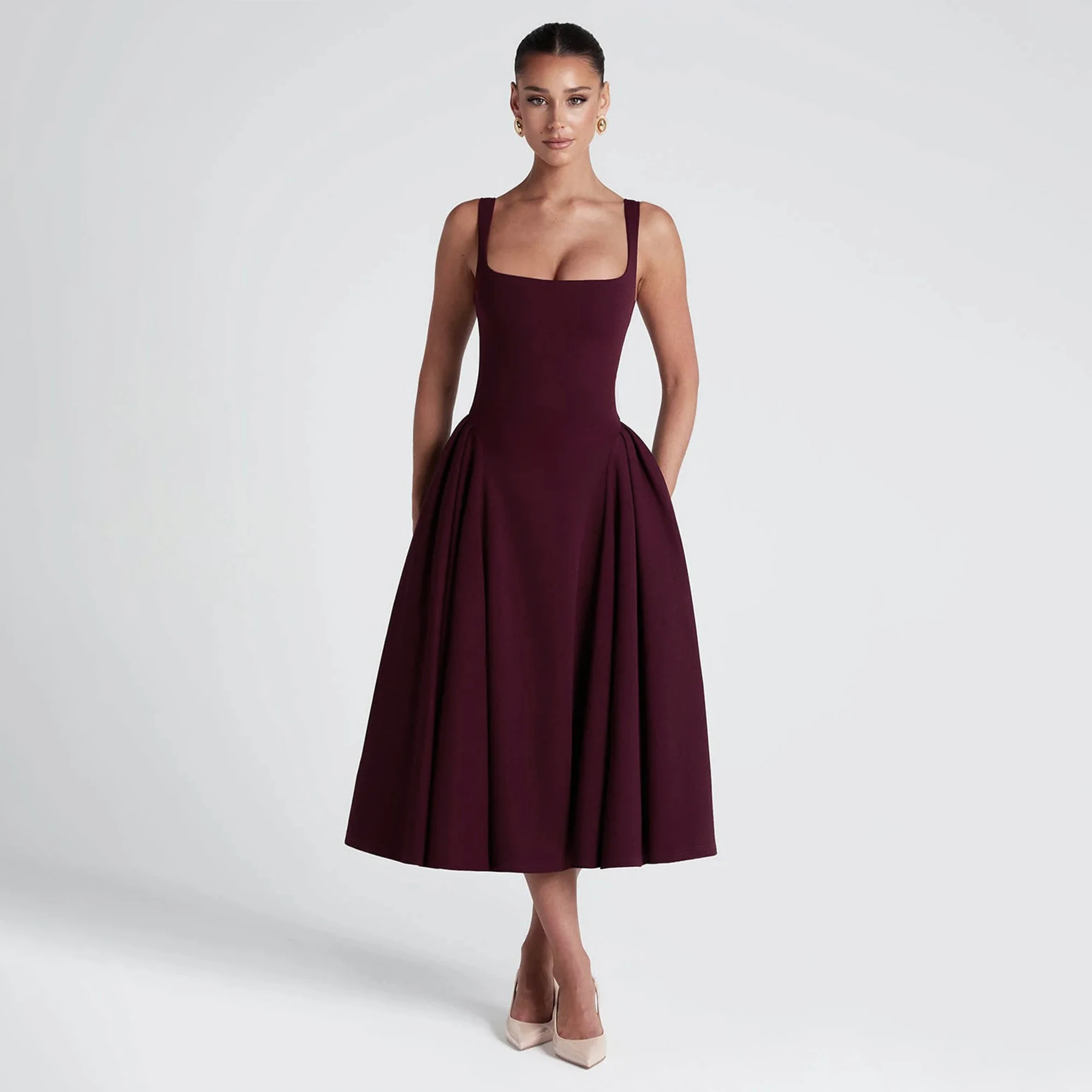 Victoria’s Vogue Women’s French Collar Dress Retro Slim Fit with Oversized Skirt Vintage Strapless Gown Transoceanic Trend