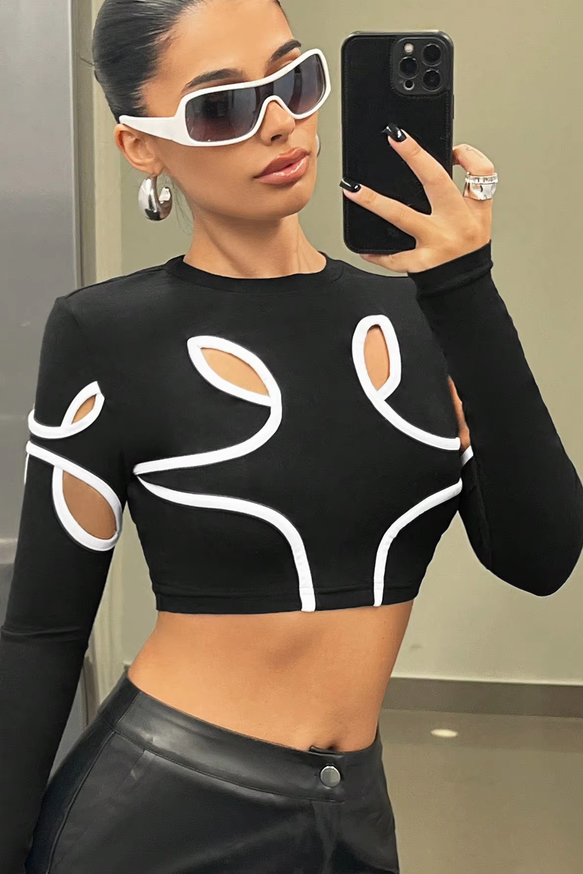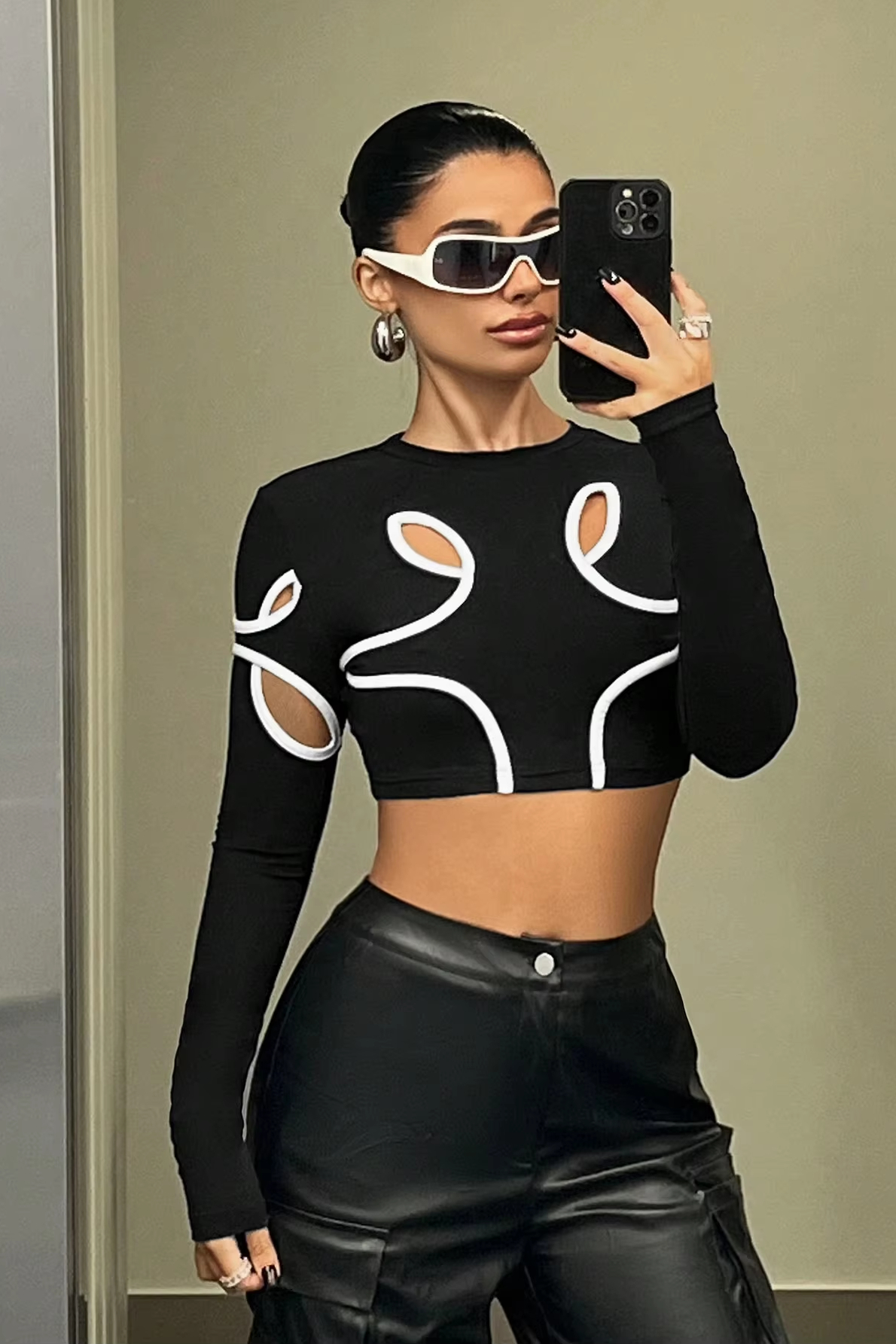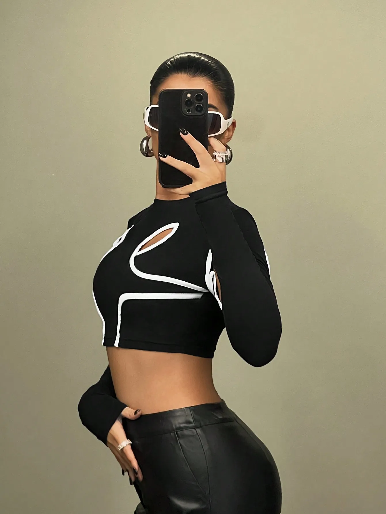 Victoria’s Vogue Spring and summer fashion short long sleeve top slim senior sense round neck spice girl style design lady