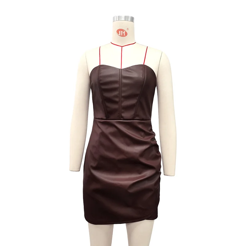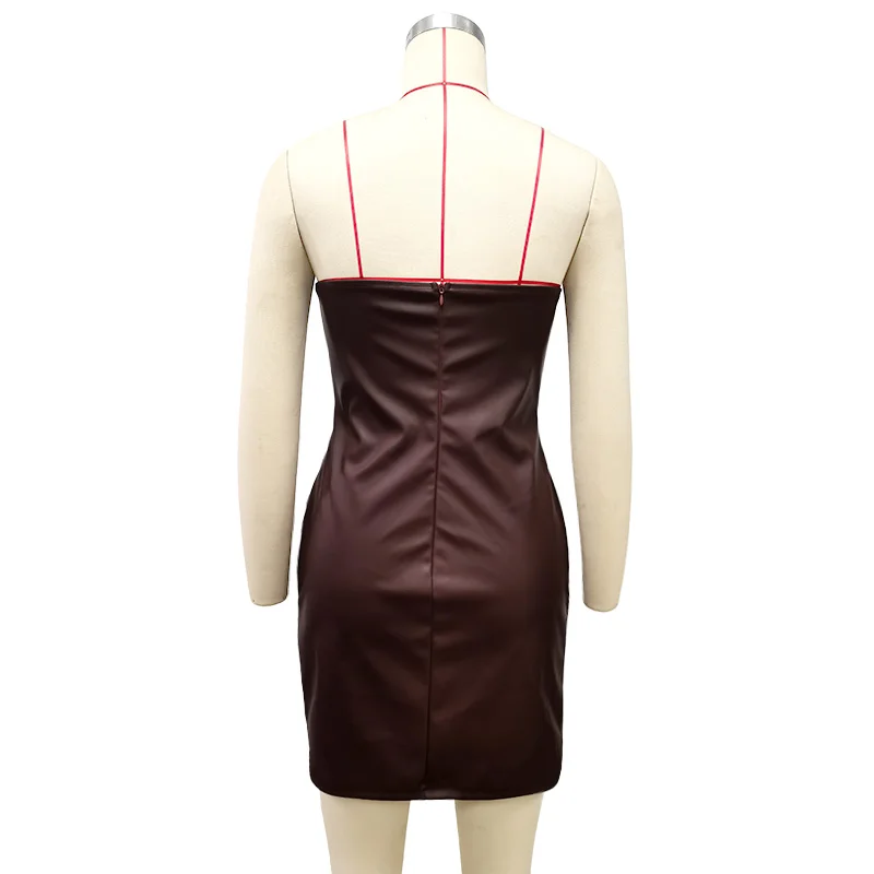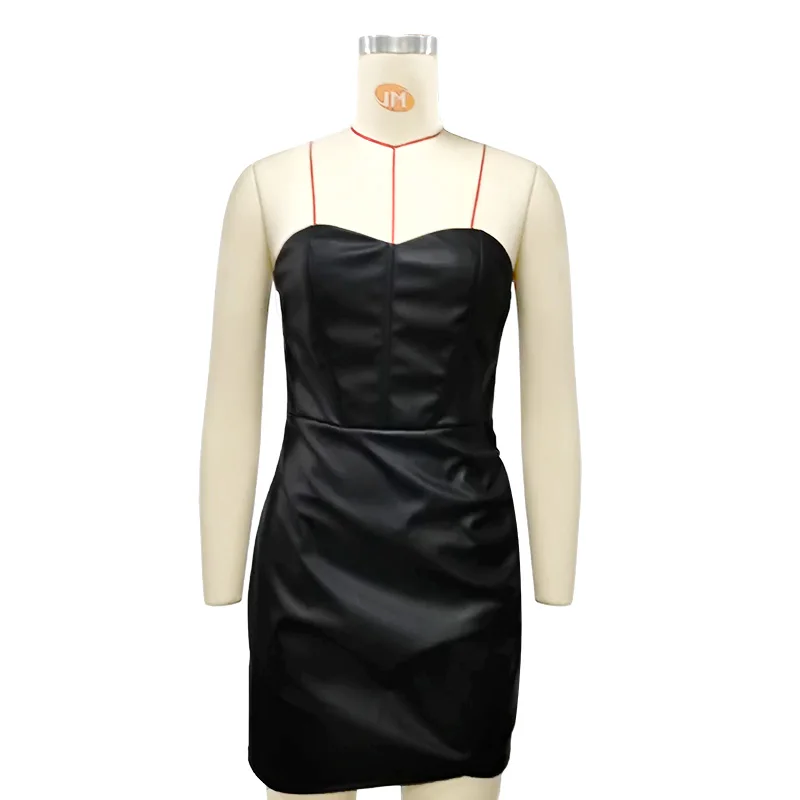Victoria’s Vogue Spring And Summer New Fashionable Design Strapless Sexy Hip Hugging PU Dress Female Nightclub Dress Up For Women
