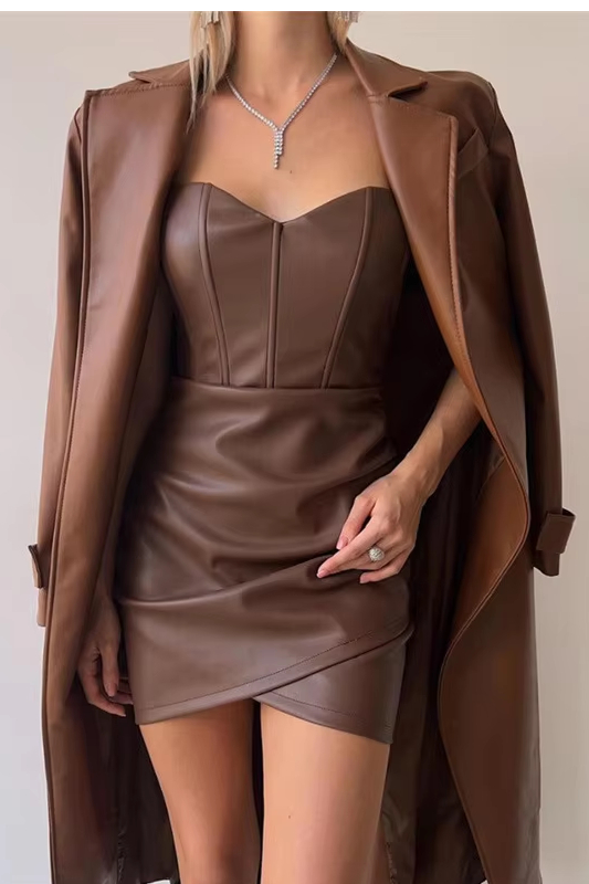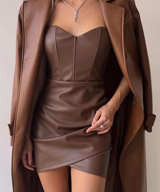 Victoria’s Vogue Spring And Summer New Fashionable Design Strapless Sexy Hip Hugging PU Dress Female Nightclub Dress Up For Women