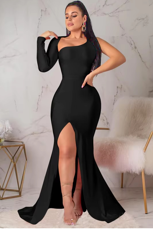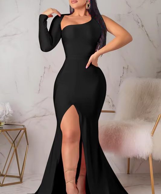 victoria’svogue Spring Fall Longuette Long-sleeved Elastic Force Single Sleeve Slim Long Women’s DressNotice: