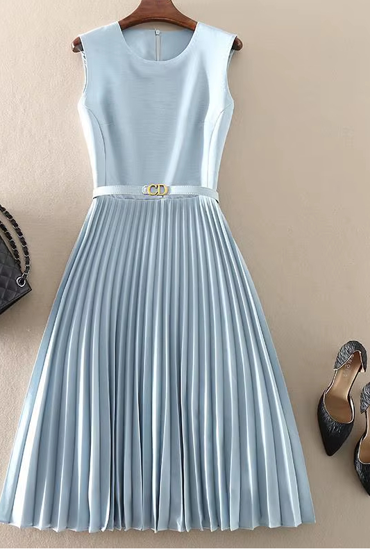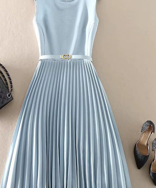 Victoria’s Vogue Summer New Temperament Women Clothing Slim Elegant Dress Ladies Fashionable Sleeveless O-neck Pleated Skirt Corset Dress