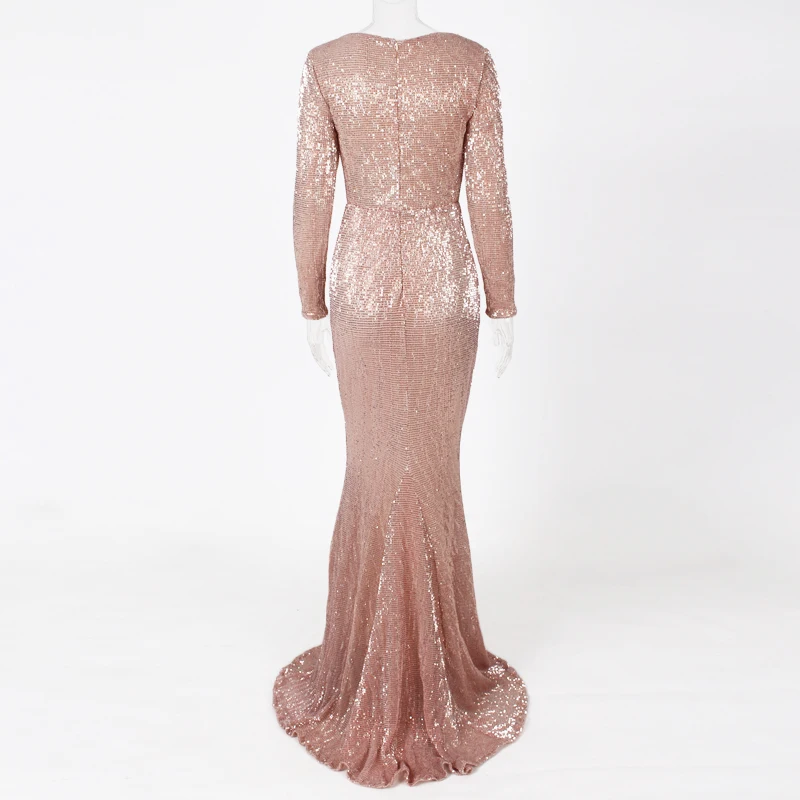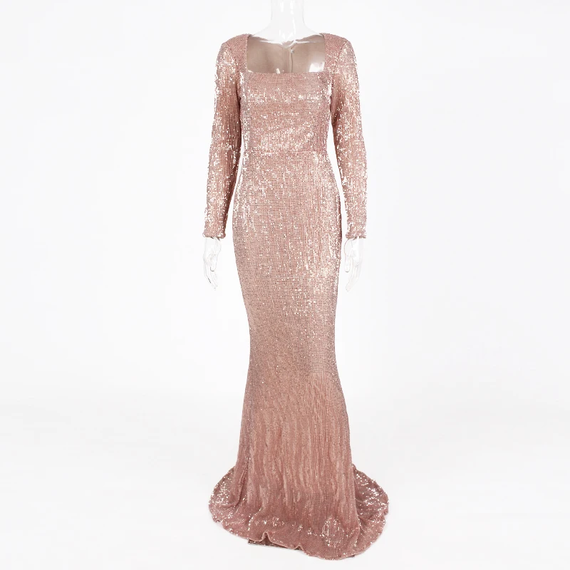 victoria’svogue 2021 Square Collar Modest Sequined Long Evening Mermaid Dress Full Sleeved Stretchy Floor Length Prom Maxi Gown