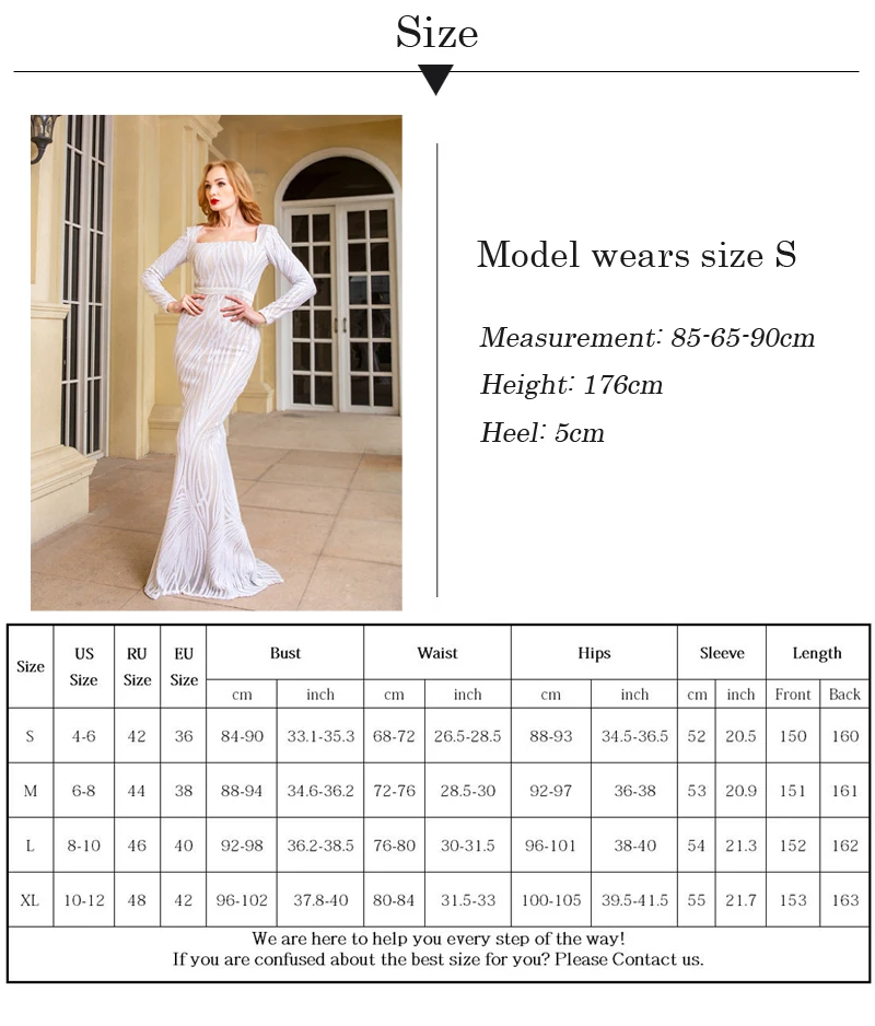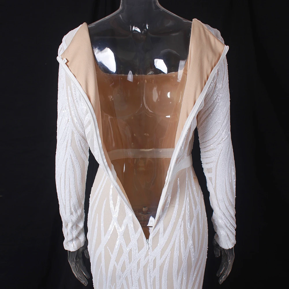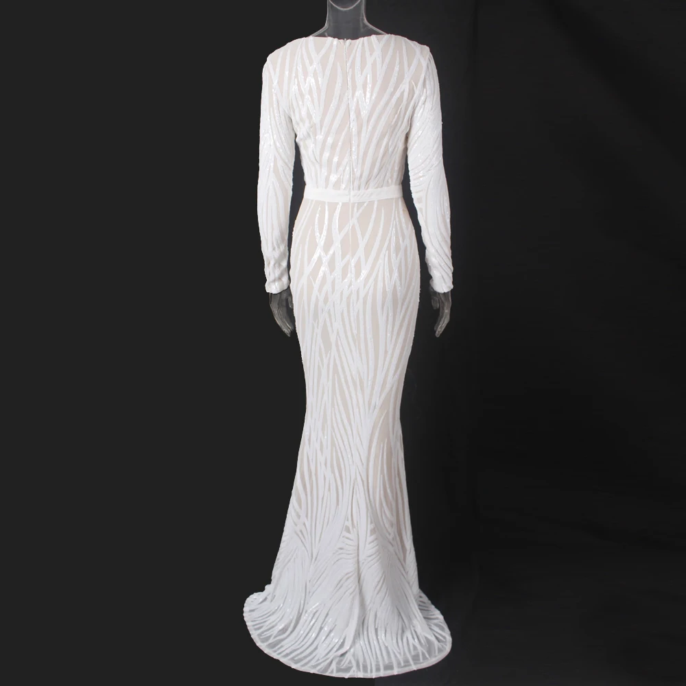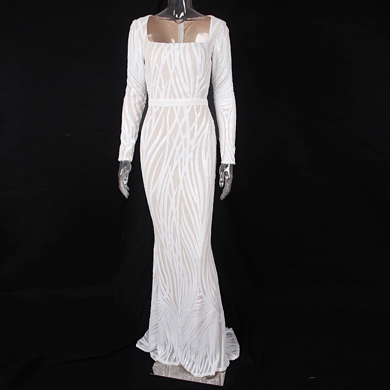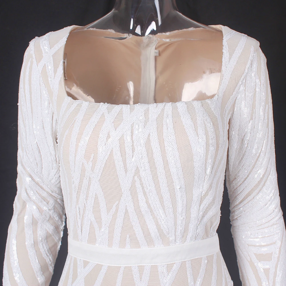 victoria’svogue 2021 Square Collar White Sequined Long Modest Evening Party Gown Maxi Dress Elegant Floor Length Full Sleeved