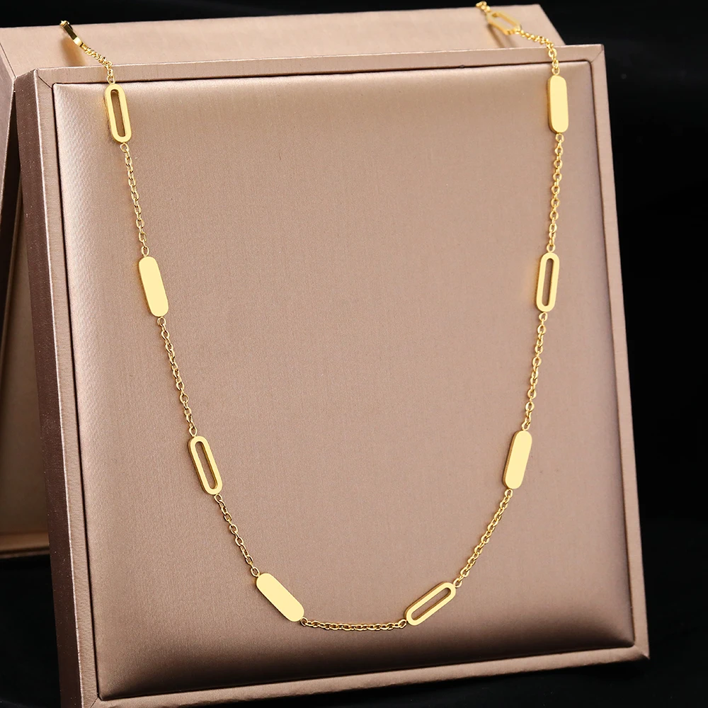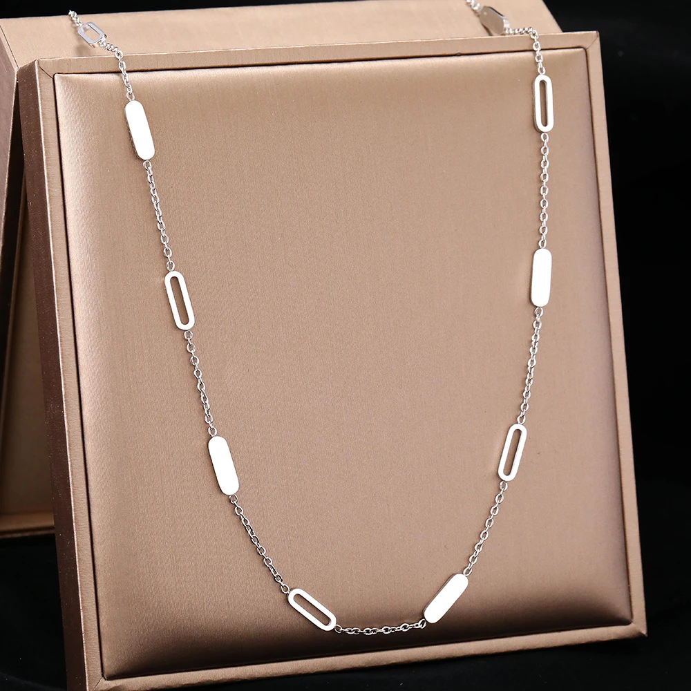 Victoria’s Vogue Stainless Steel Necklaces Geometric Round Rectangle Hollow Rectangle Choker Chain Trending Products Necklace For Women Jewelry