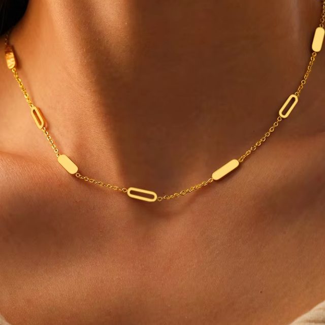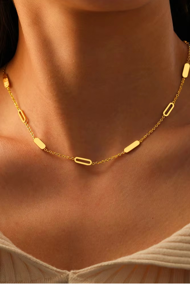 Victoria’s Vogue Stainless Steel Necklaces Geometric Round Rectangle Hollow Rectangle Choker Chain Trending Products Necklace For Women Jewelry