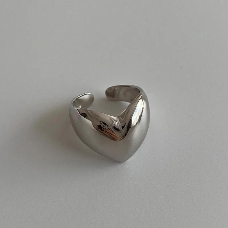 victoria’svogue Stainless Steel Simple Smooth Metal Heart Rings For Women Men Y2K Trendy Open Ring Korean Elegant Party Jewelry Couple Gifts