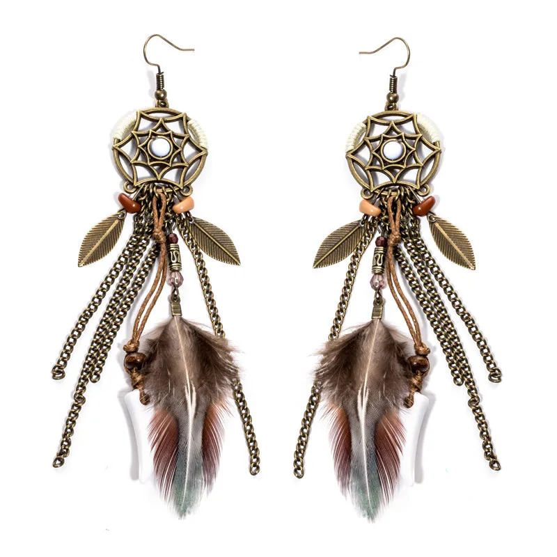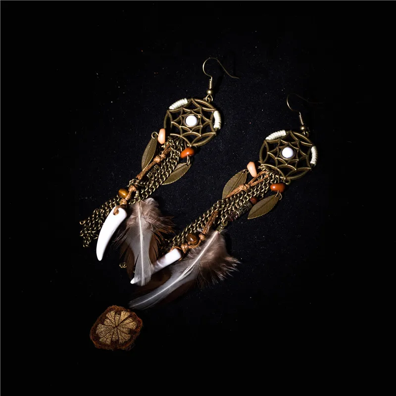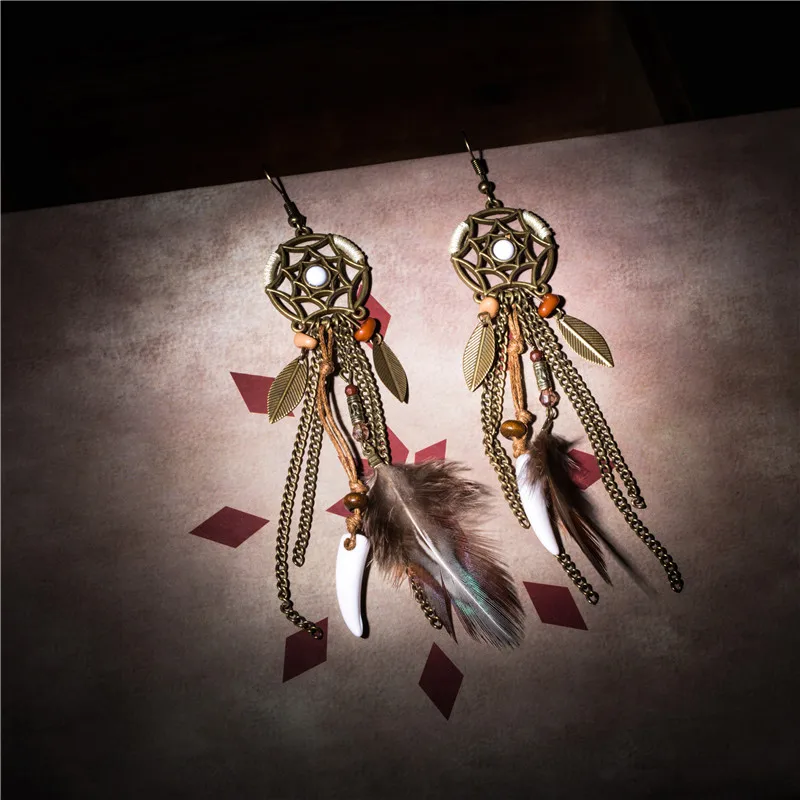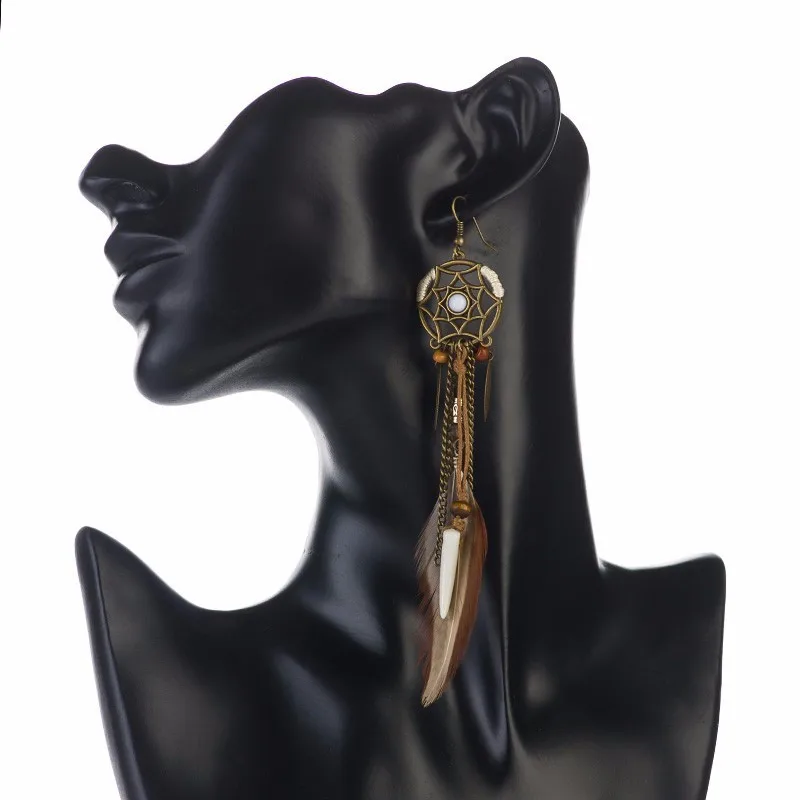 victoria’svogue Statement long feather tassel fringe dangle drop earrings Indian ethnic vintage luxury wedding party jewelry 2021 for women