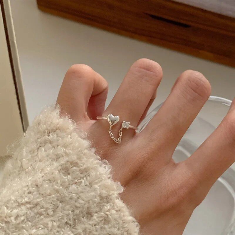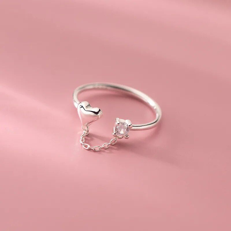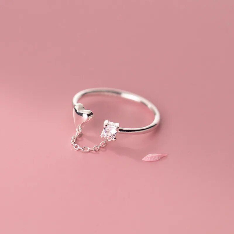 Introducing our Sterling Silver Zircon Heart Chain Ring – a unique blend of classic elegance and bohemian flair. Designed for the woman who loves to stand out, this piece combines the timeless beauty of sterling silver with the modern twist of an irregular heart design. Whether it’s for daily wear or a special occasion, this ring adds a touch of personality to any outfit.