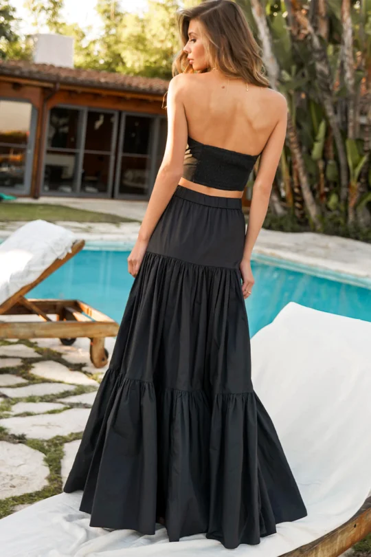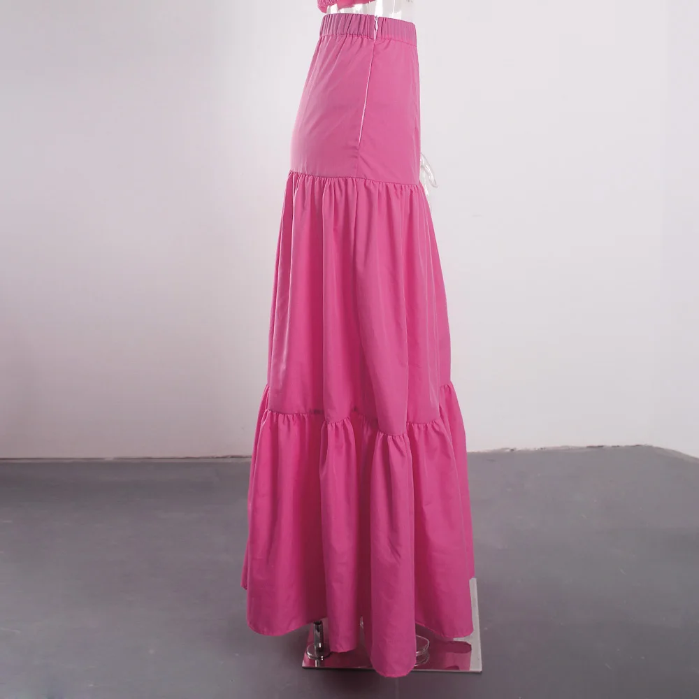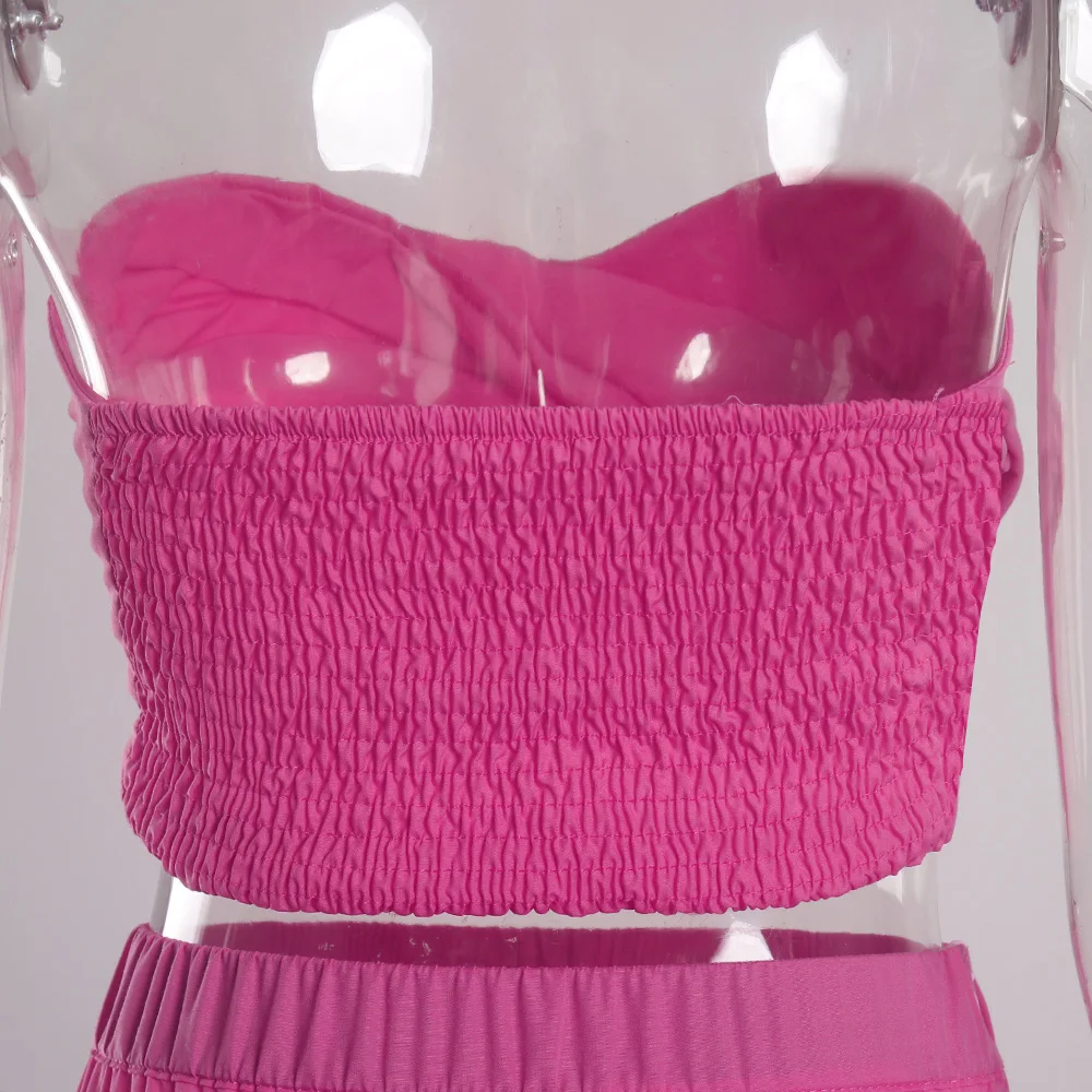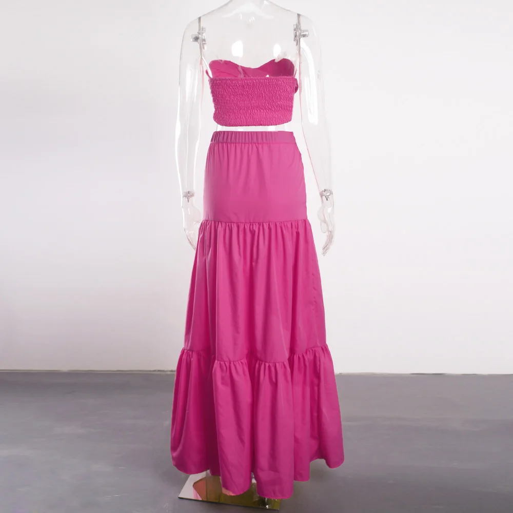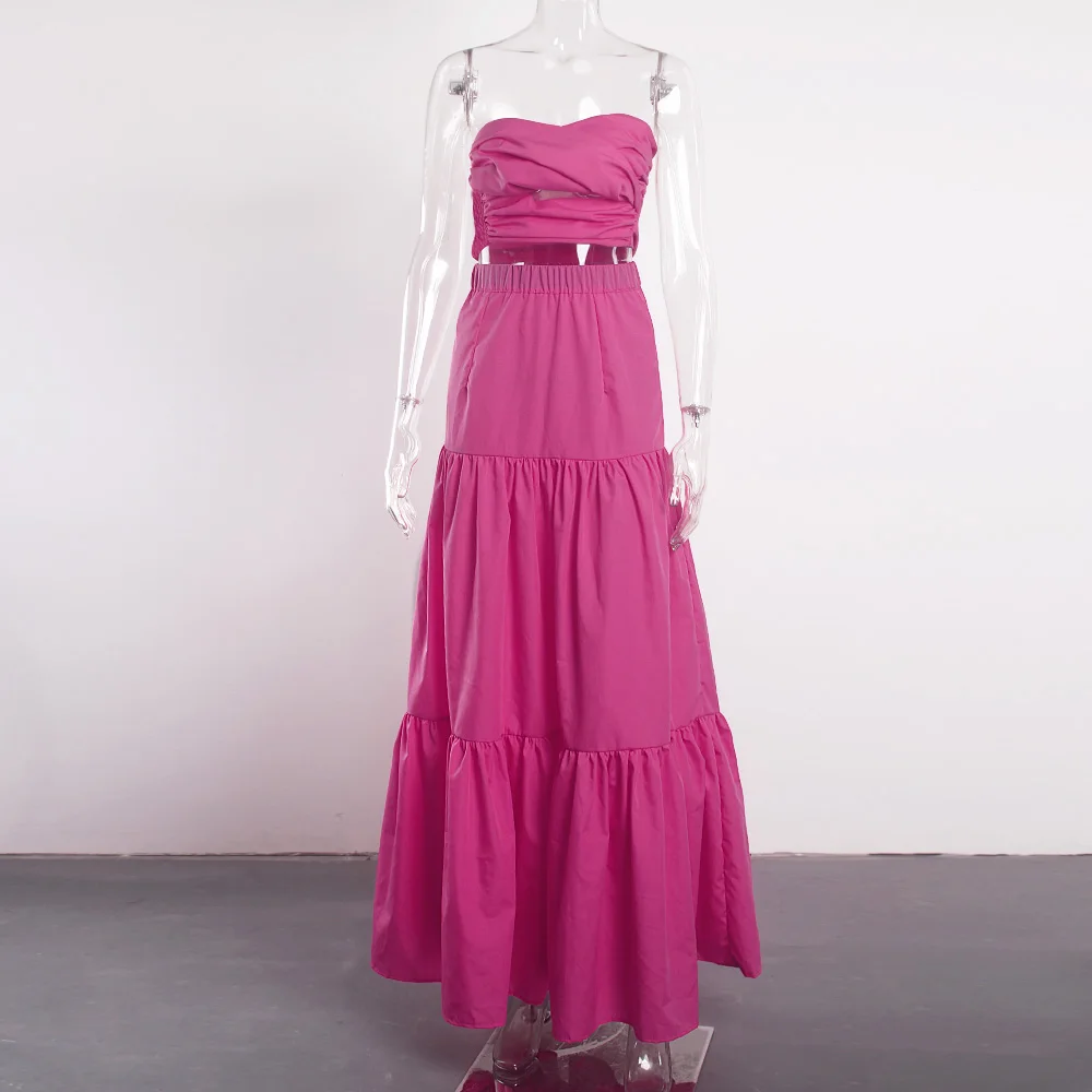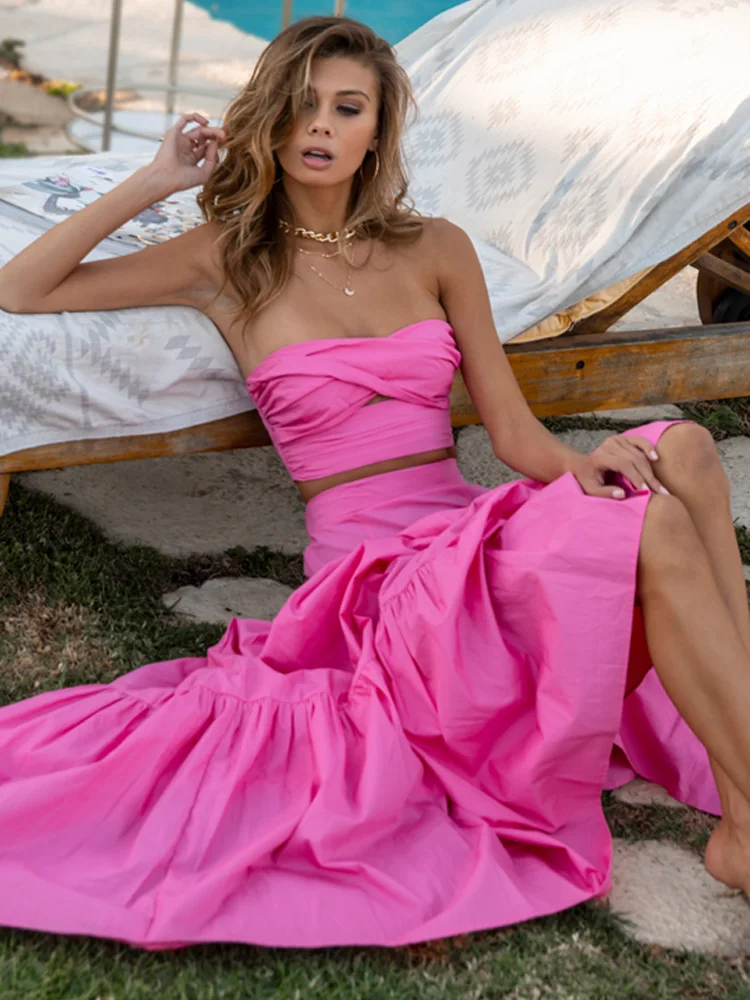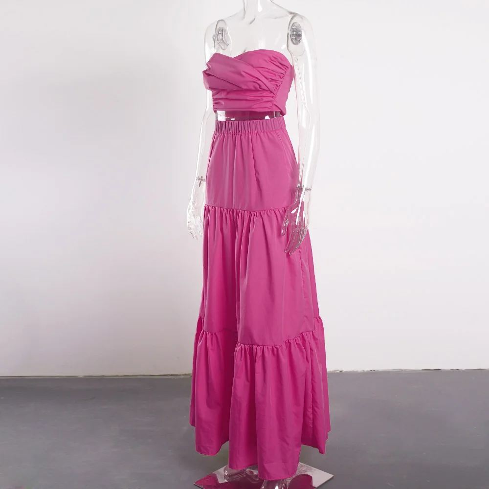 victoria’svogue 2021 Strapless Crop Tops And A Line High Waist Skirt for Women Summer Wear Ruffled Pleated Sleeveless