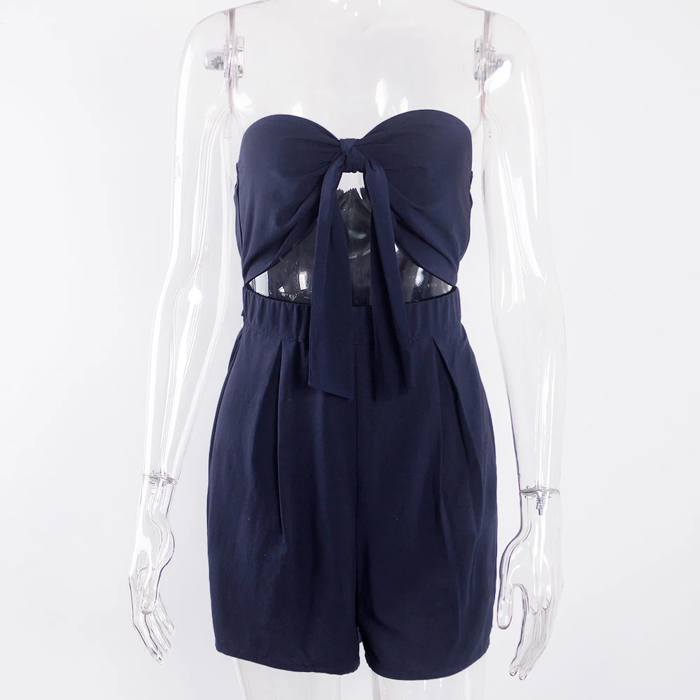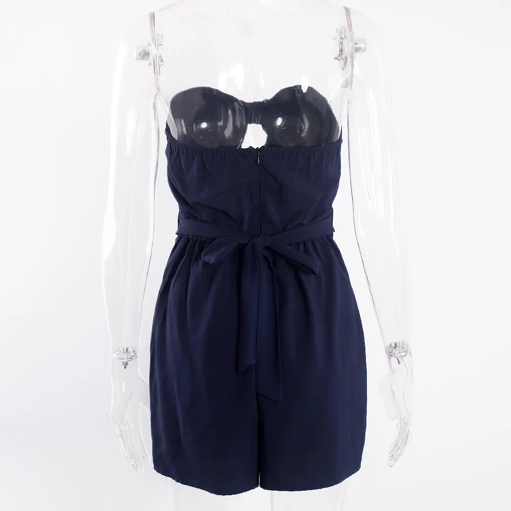 victoria’svogue 2021 Strapless Lace Up Summer Playsuits for Women Backless Short Sashes Hollow Out Sexy Chic Jumpsuits Size |