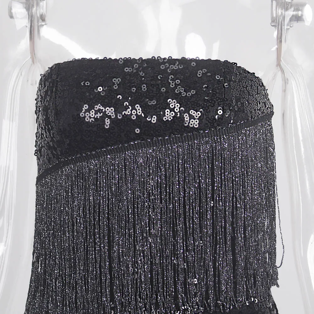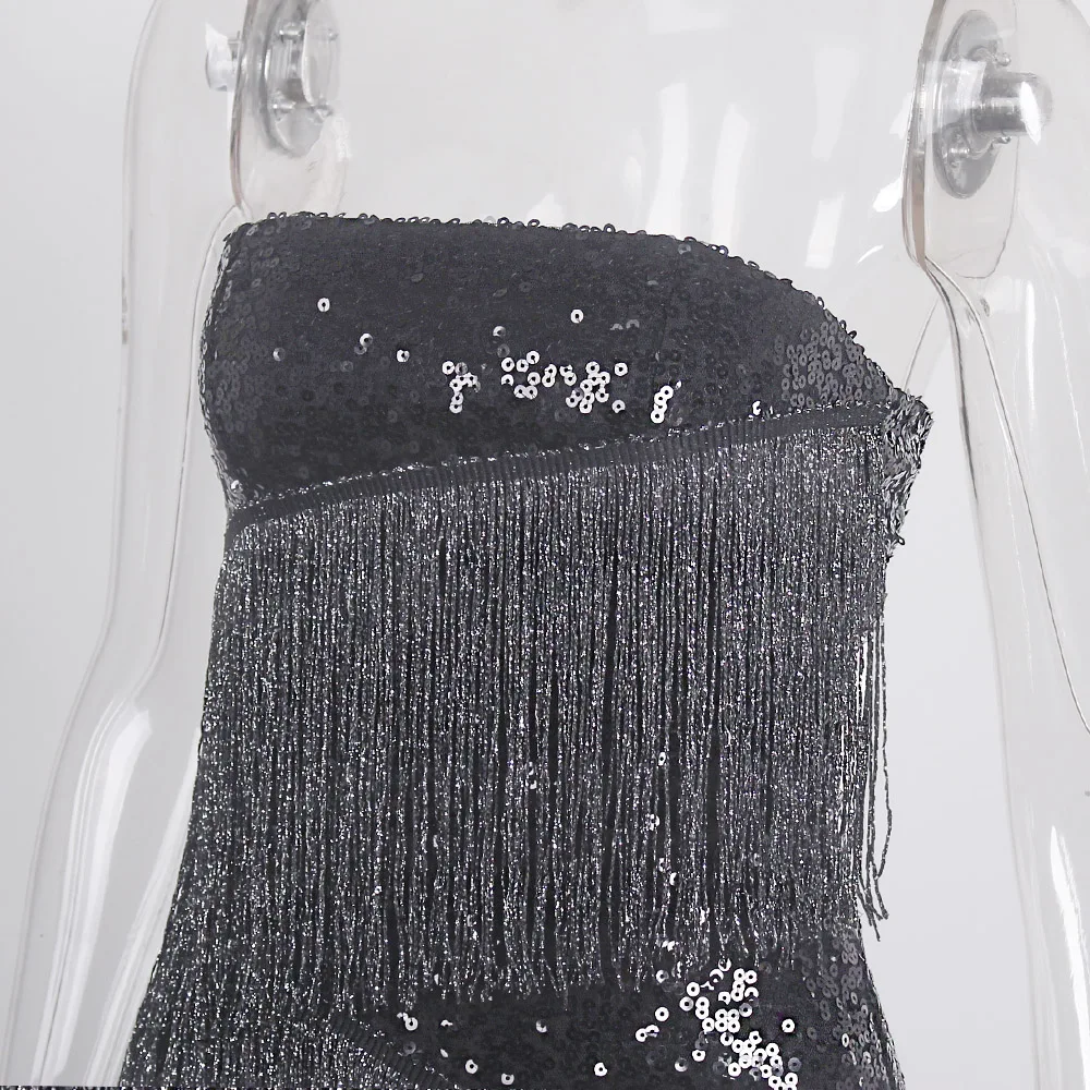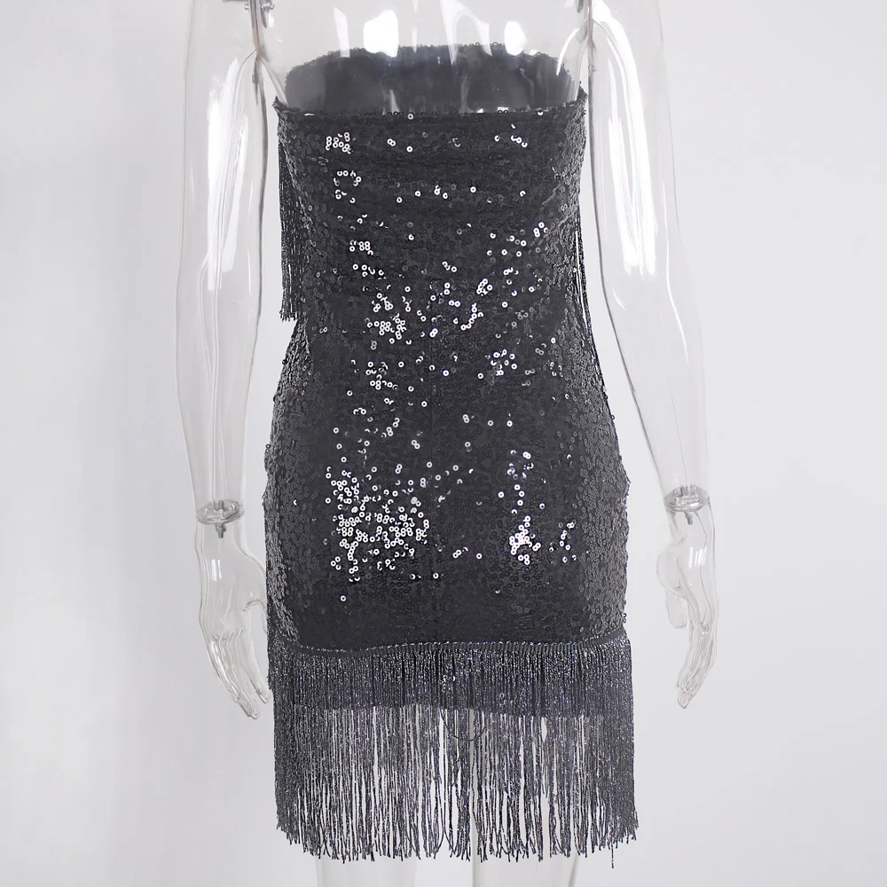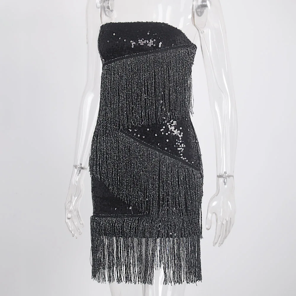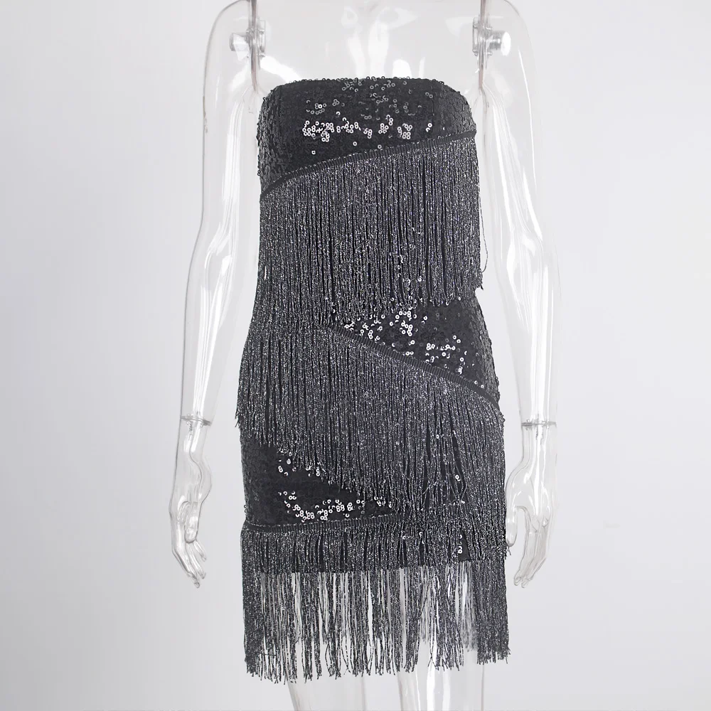 victoria’svogue 2021 Strapless Sexy Party Night Club Dress Tassel Bodycon Strechy Short Sleeveless