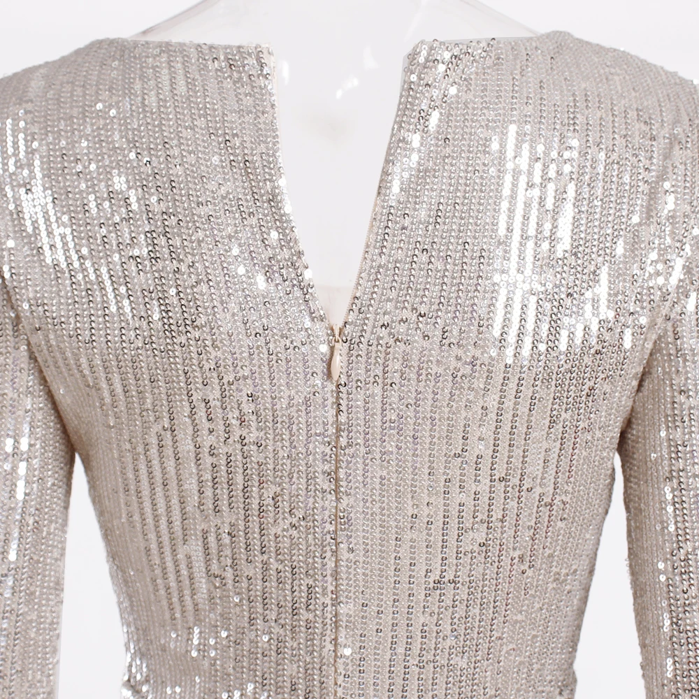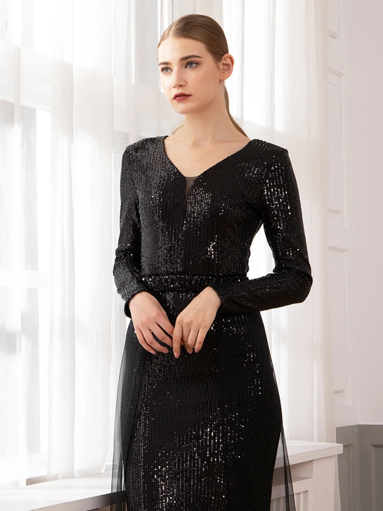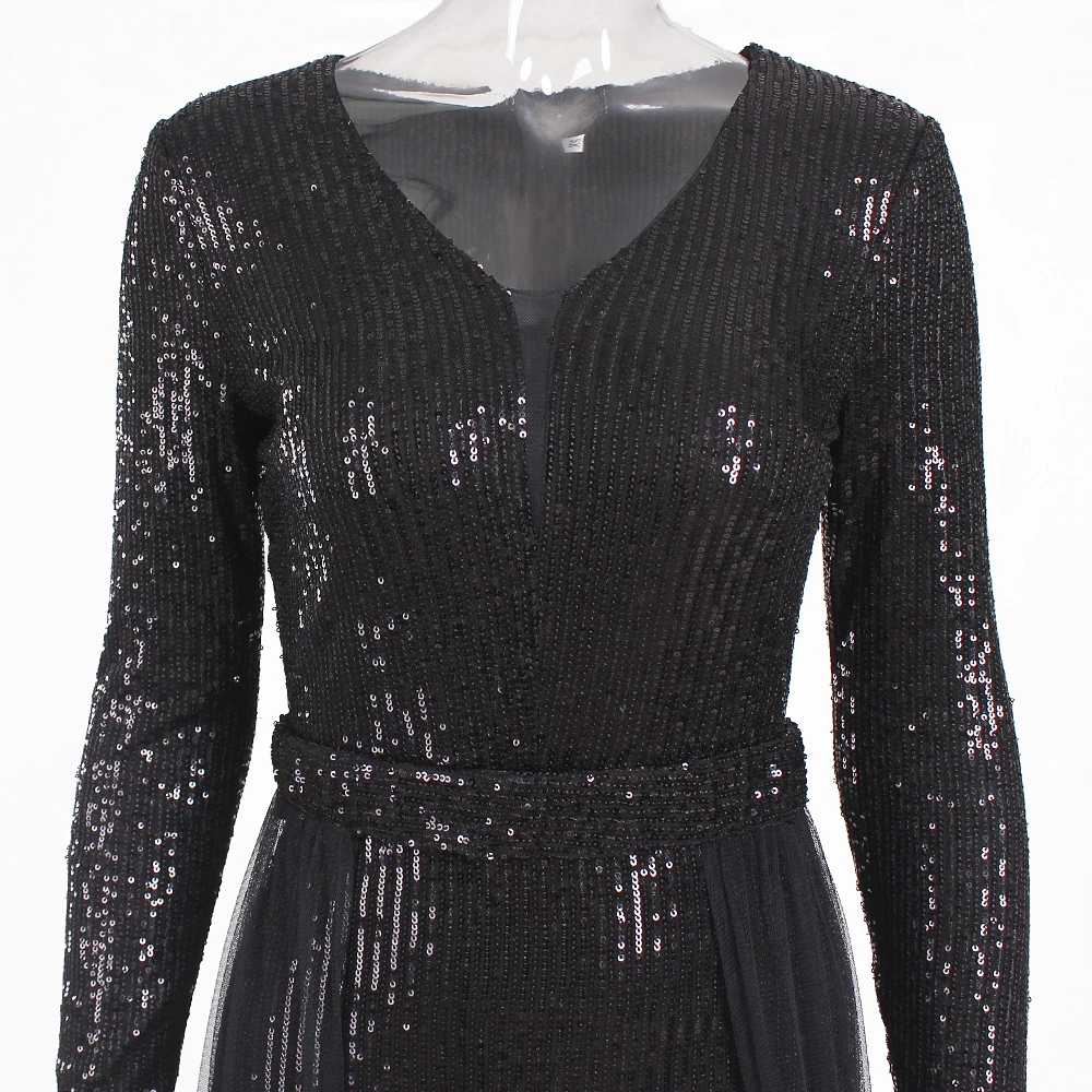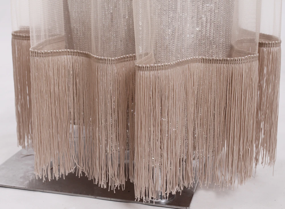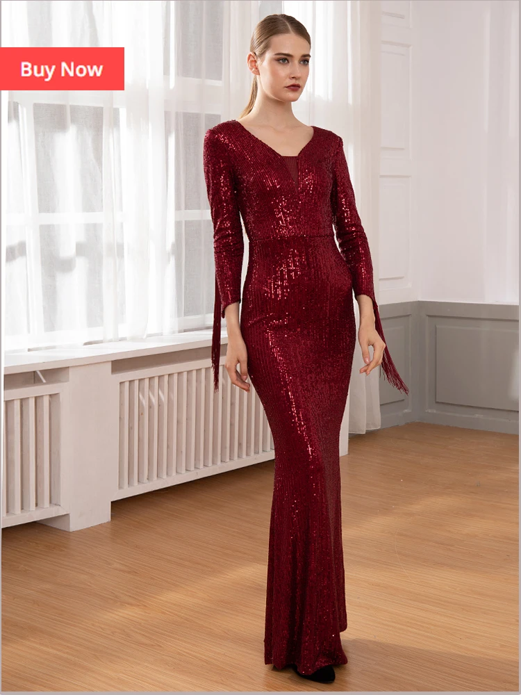 victoria’svogue 2021 Striped Sequined V Neck Maxi Dress Patchowrk Tassel Stretchy Hollow Out Full Sleeved Long Party Dress with Mesh Trains Skrit