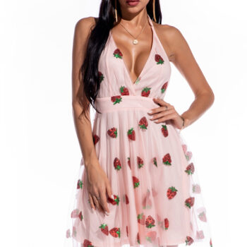 victoria’s vogue Sexy Halter pink strawberry Sequin summer Dress women vintage Mini beach party bodycon Dress Night club elegant dresses vestidos