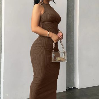 victoria’s vogue Ribbed Solid Hollow Out Backless Sleeveless Sexy Slit Mini Dress Bodycon 2022 Summer Women Outfits Elegant Party Y2K
