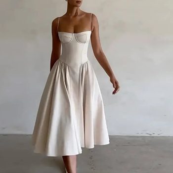 Victoria’s Vogue Elegant Solid Chest Wrapped Sling Dress Women Sexy Off Shoulder Pleated Maxi Vestidos 2024 Summer Ladies Vacation Party Dresses