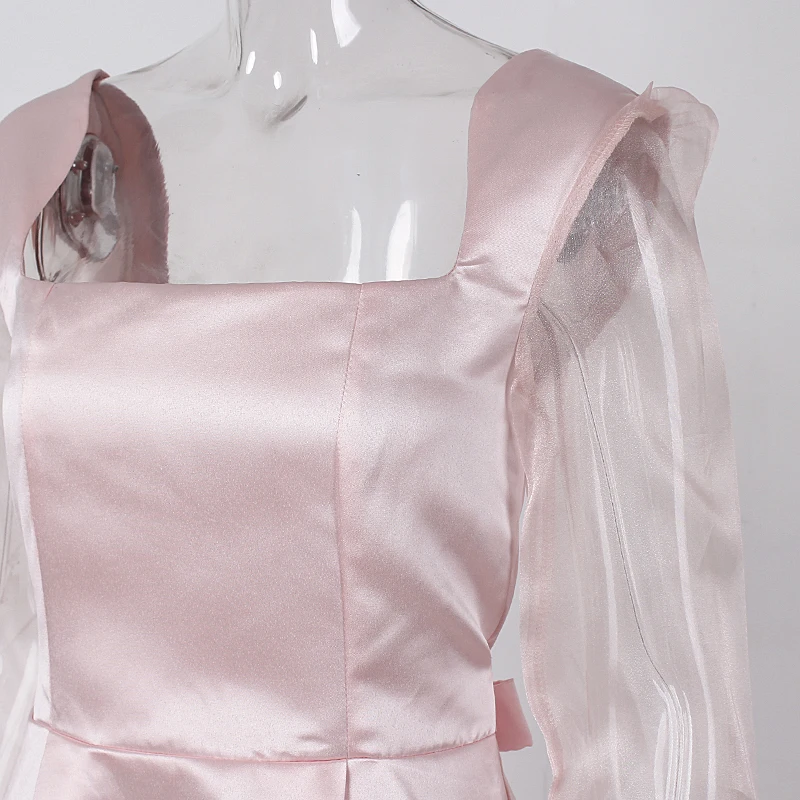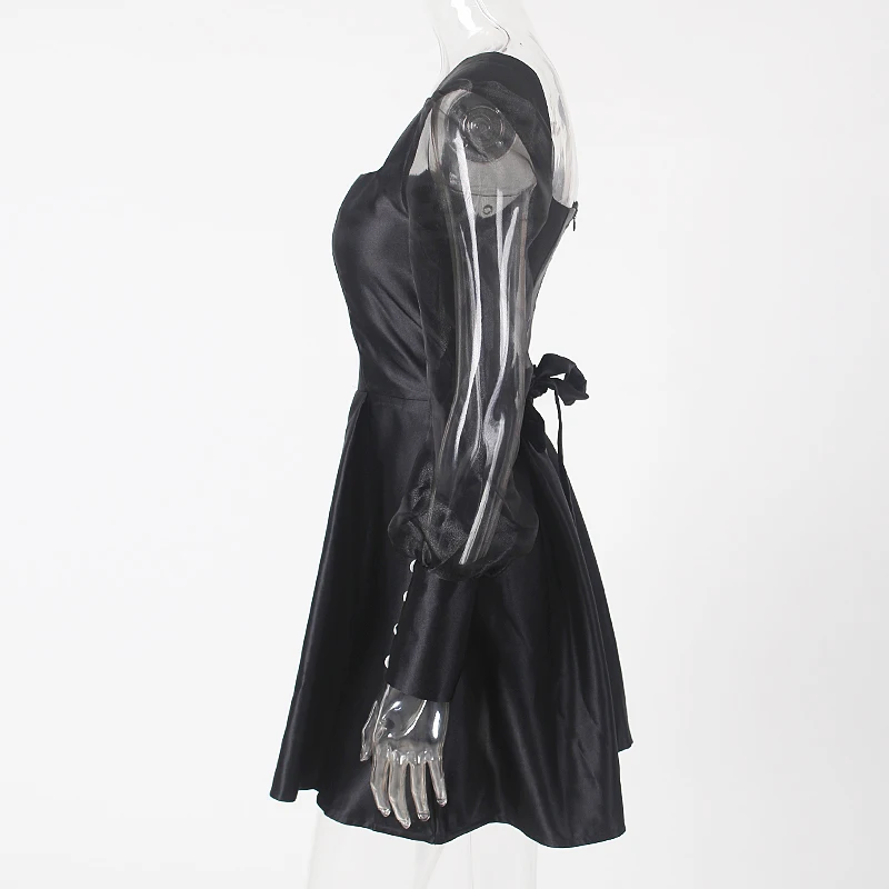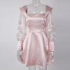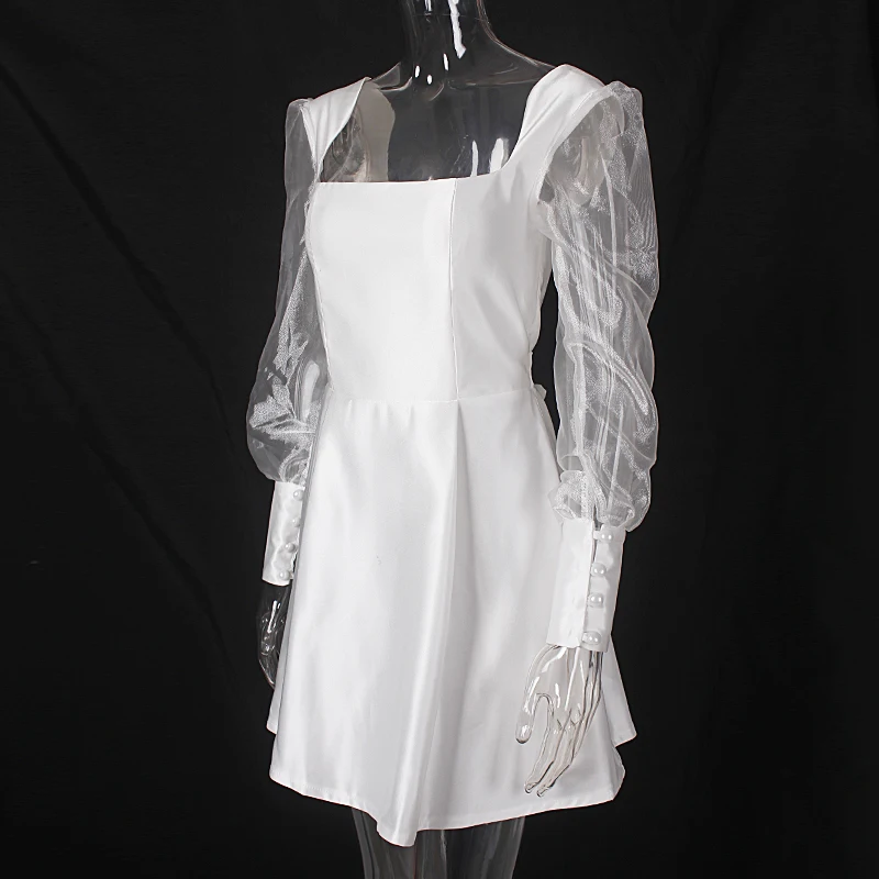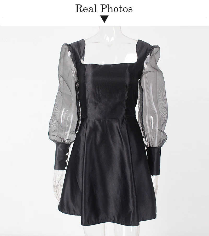 victoria’svogue 2021 Summer Short Party Dress Hollow Out Square Neck Puff Ballon Sleeves Patchwork Mesh Night Club Mini Dress Spring 2021