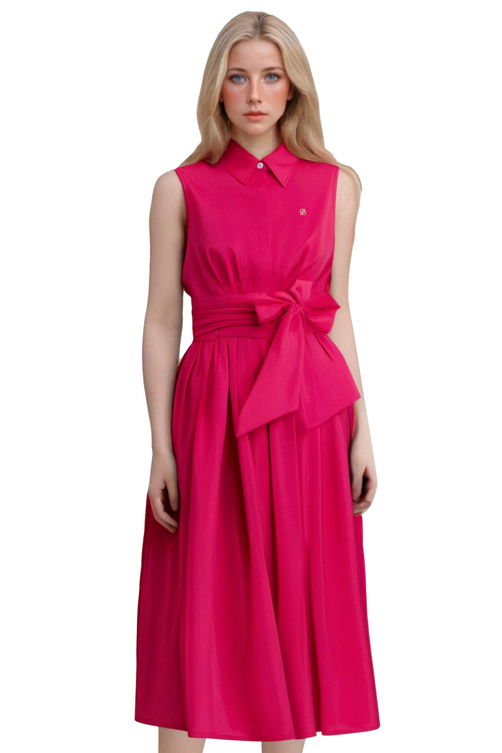 Victoria’s Vogue Summer Women Dress Sleeveless Casual Lapel Shirt Dress Bow Belt Solid Color A Line Fashion Metal Buckle Female Dresses