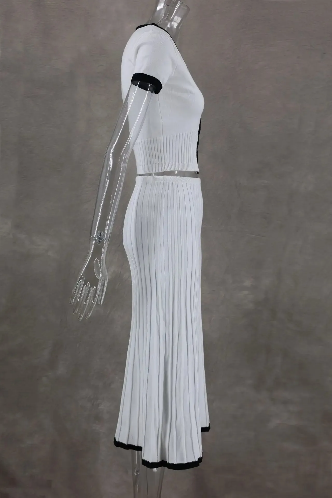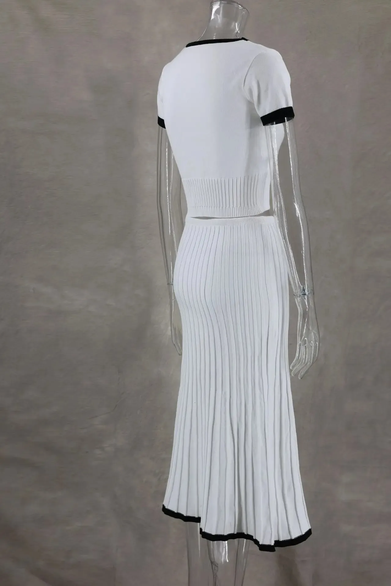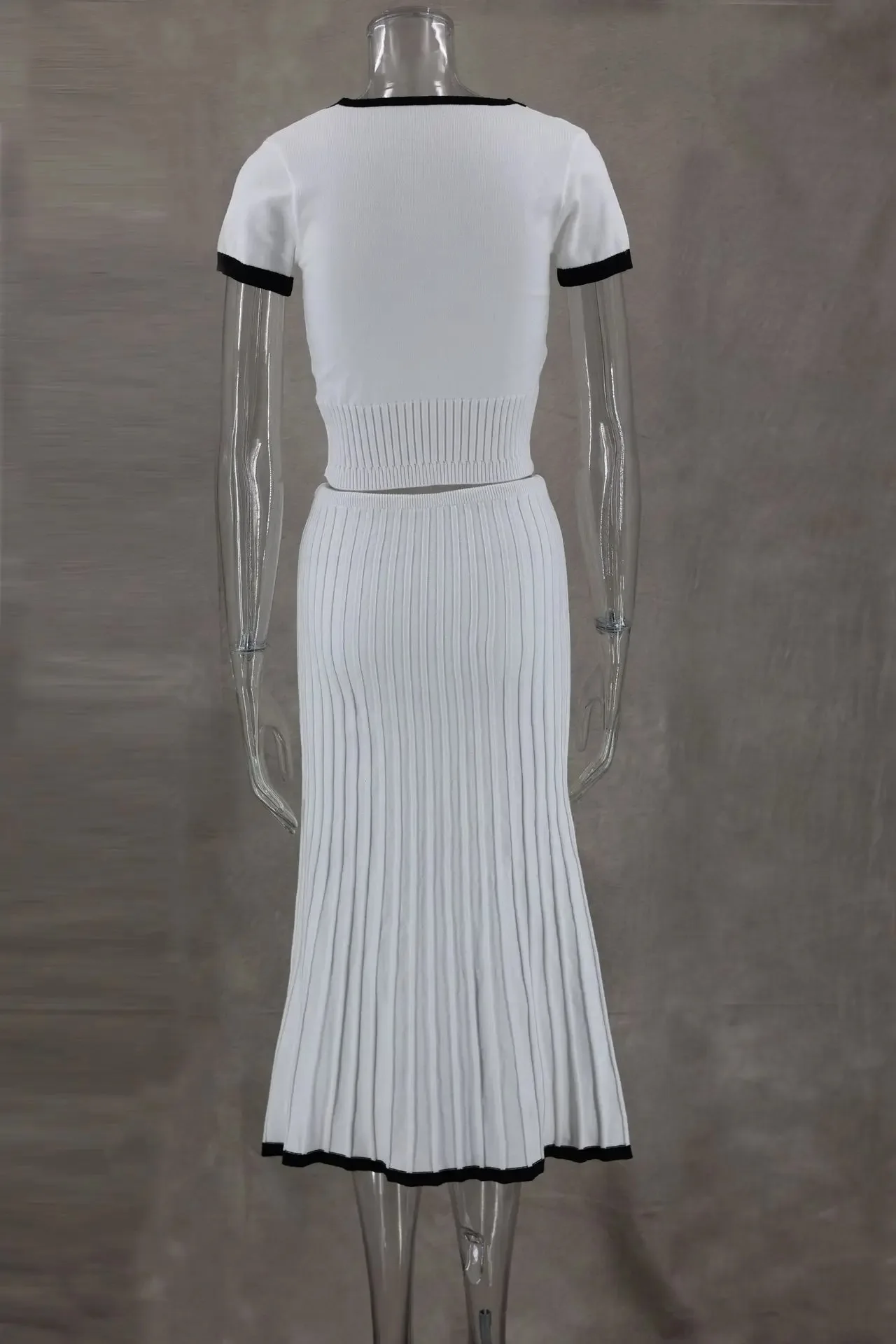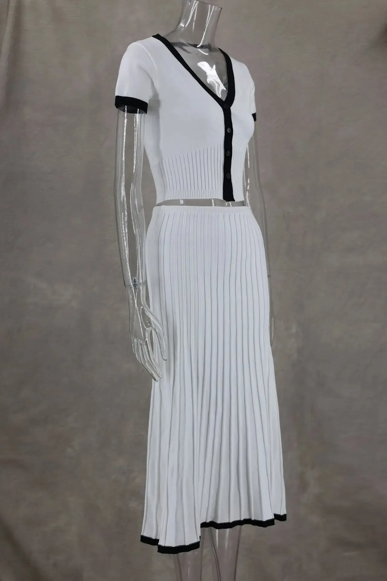Victoria’s Vogue Summer Women White long Skirt Suit Short Sleeve V-neck crop top pleated set elegant dress 2 piece skirt set