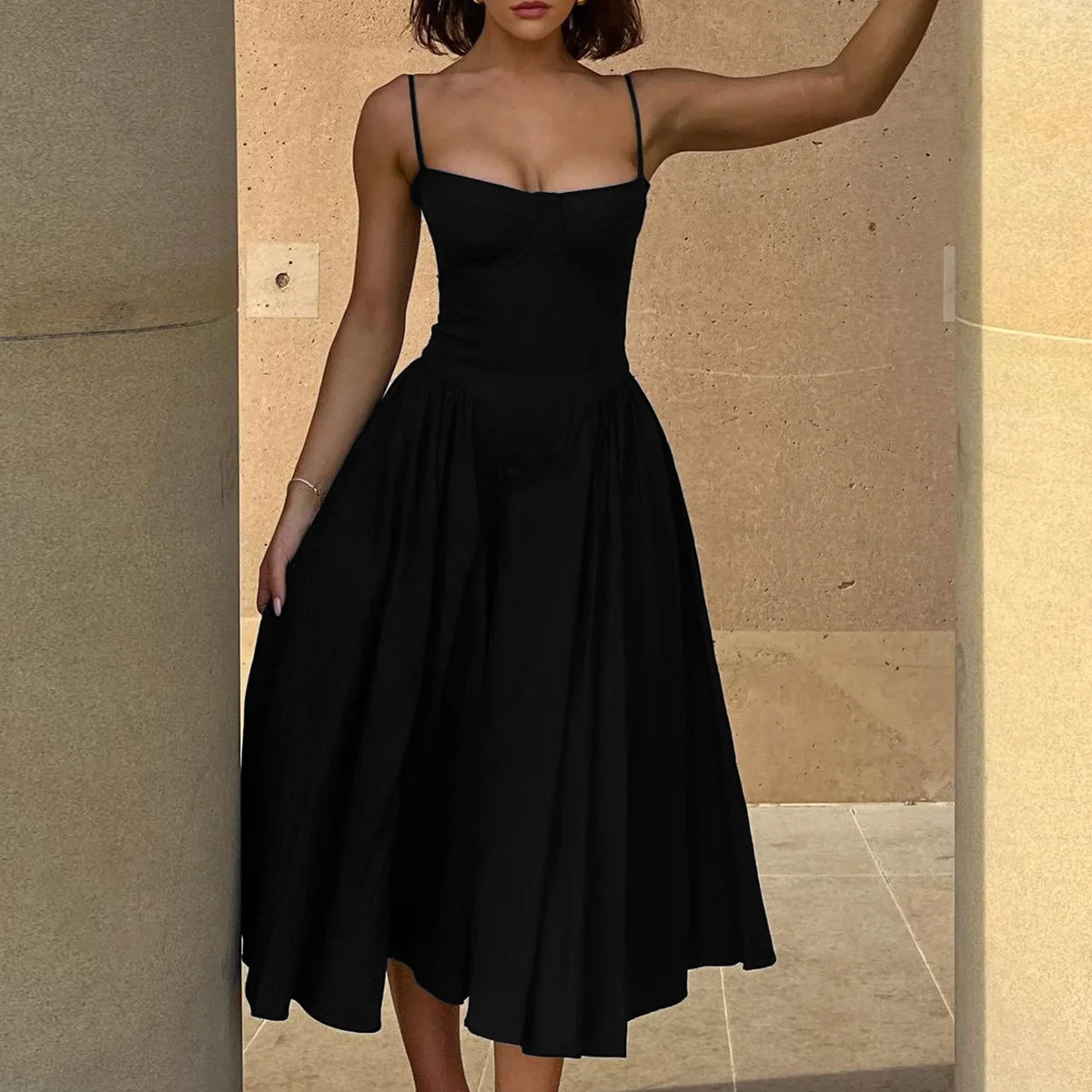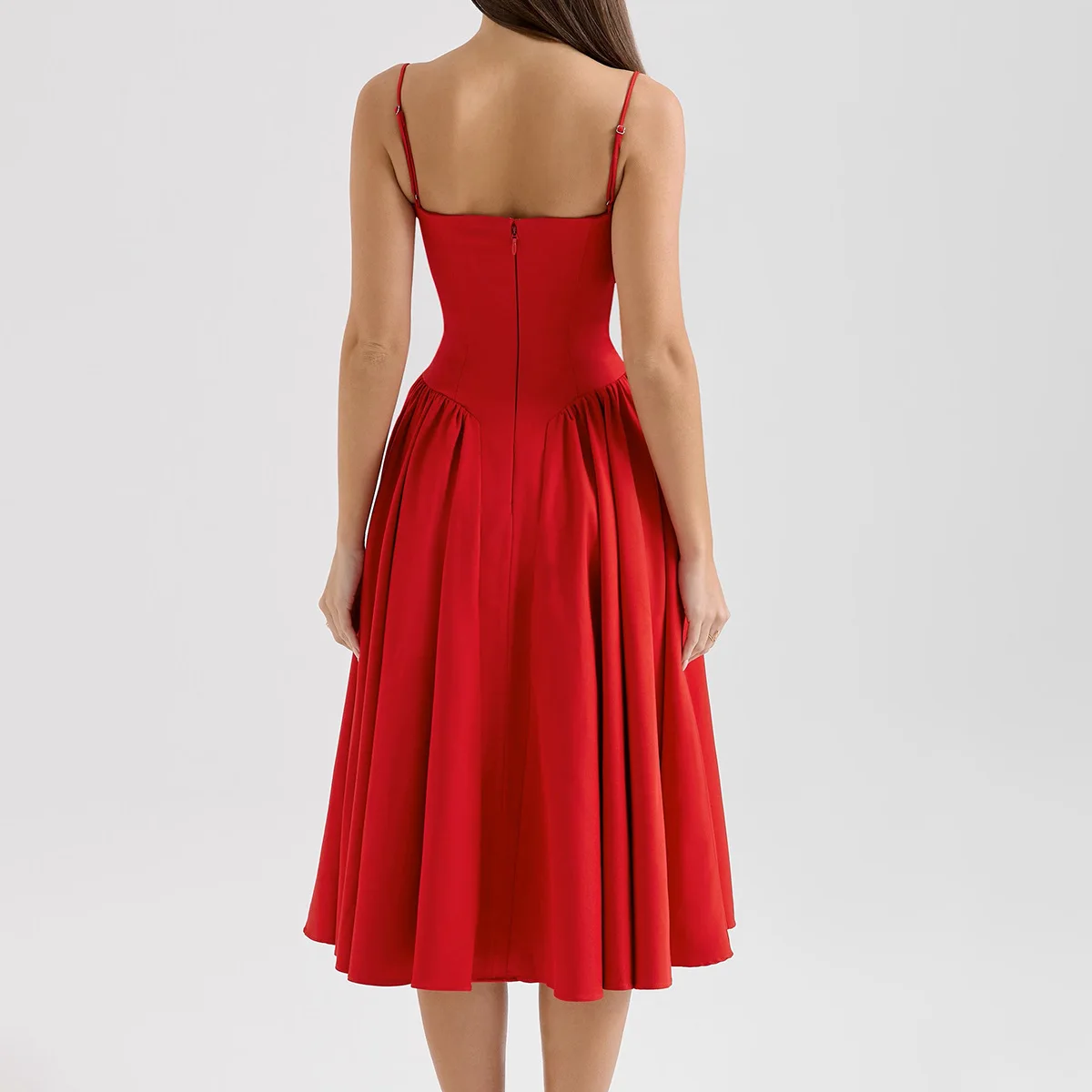 Victoria’s Vogue Suninheart Spaghetti Strap Summer Party Dresses 2025 New Arrivals Fit and Flare Elegant Midi Dress Red Night Date Dress