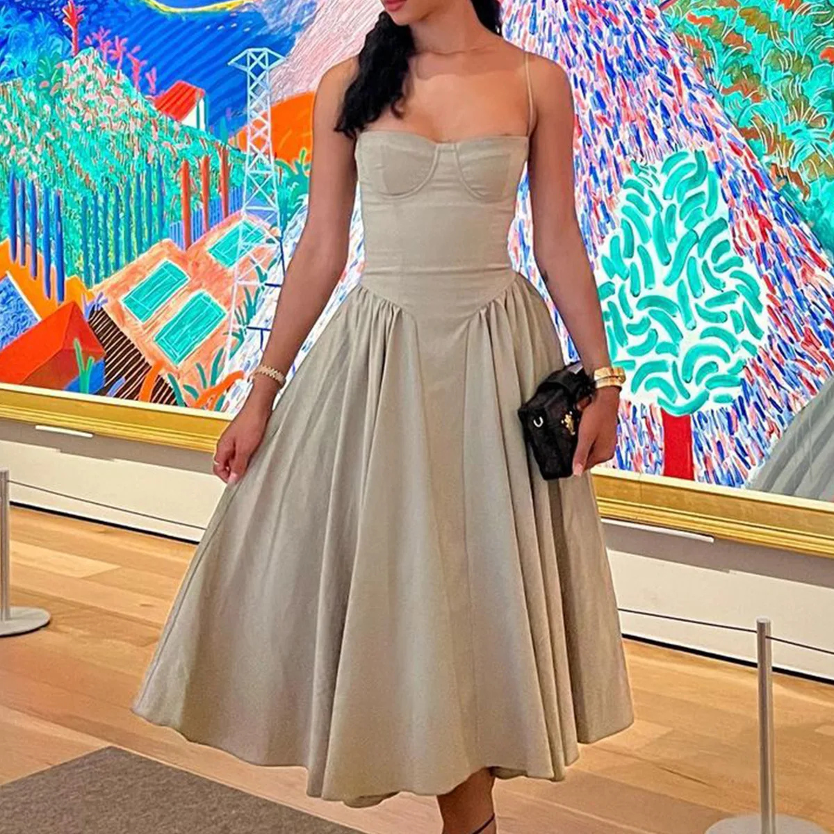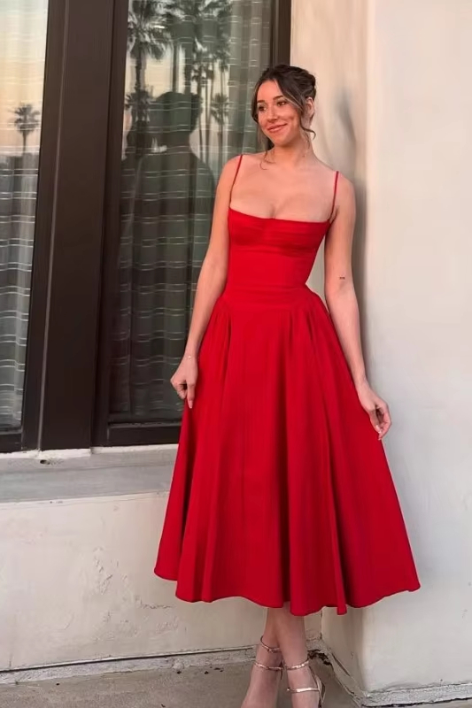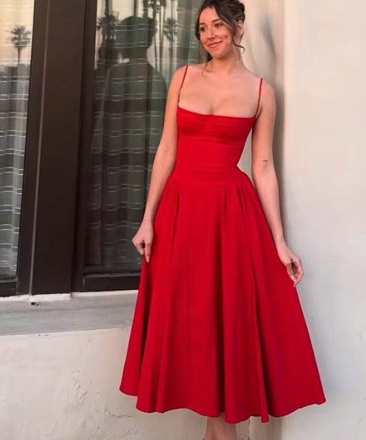 Victoria’s Vogue Suninheart Spaghetti Strap Summer Party Dresses 2025 New Arrivals Fit and Flare Elegant Midi Dress Red Night Date Dress